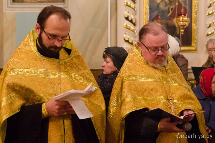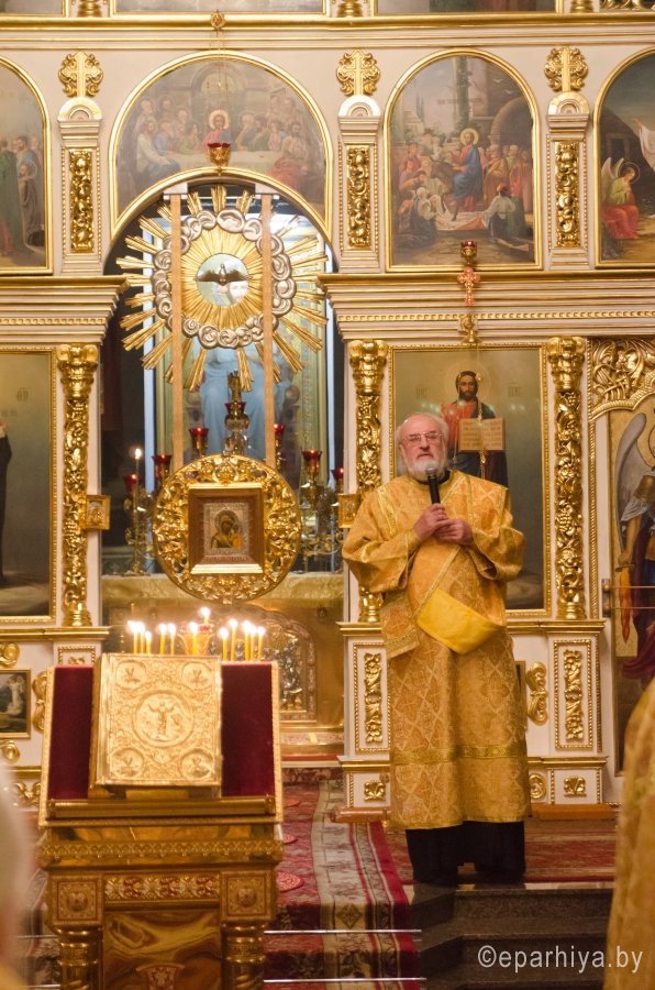 15 ноября 2015г. в Свято-Петро-Павловском кафедральном соборе г. Гомеля, состоялось вечернее богослужение с чтением акафиста Пресвятой Владычице нашей Богородице нараспев. Богослужение возглавил епископ Гомельский и Жлобинский Преосвященнейший Стефан в сослужении духовенства собора. По завершении богослужения со словами проповеди к молящимся обратился протодиакон Владимир Семерок. |