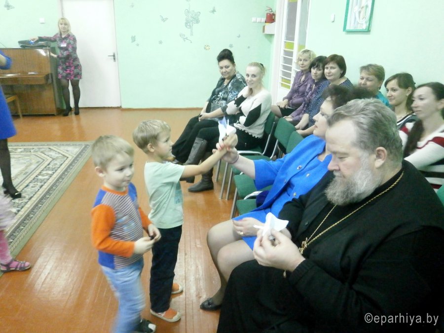 19 ноября 2015 г. в рамках сотрудничества Православной Церкви с Министерством образования, благочинный Буда-Кошелвского благочинного округа протоиерей Сергей Пешко посетил ГУО Дошкольный центр развития ребенка г. Буда-Кошелево, где принял участие в проведении открытого урока. На мероприятии родители малышей и все присутствующие смогли познакомиться с программой, по которой занимаются их дети в православном кружке. К проведению открытого урока преподавателями центра была подготовлена красочная выставка с поделками и рисунками воспитанников и их родителей. Преподаватели центра смогли убедить родителей, такие занятия весьма увлекательны и помогают ребятам развивать свои способности. Ведь посещая кружек они знакомятся с библейскими сюжетами, рисуют их и открывают для себя иной, духовный мир. В завершении урока благочинный Буда-Кошелевского округа преподнес детям сладкие подарки и поблагодарил преподавателей центра за труды в деле просвещения подрастающего поколения. "Ведь - как заметил священнослужитель, - пока наши дети еще маленькие они с легкостью могут воспринять азы духовной жизни и заложить твердый фундамент для своего счастливого будущего. Нам же в свою очередь необходимо прилагать все силы для их поддержки в достижении этой благой цели". |