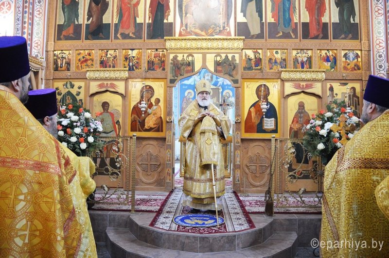 22 ноября 2015 года, в неделю 25-ю по Пятидесятнице, Патриарший Экзарх всея Беларуси митрополит Минский и Заславский Павел, совершил Божественную литургию в храме Рождества Пресвятой Богородицы поселка Тарасово Минского района. Его Высокопреосвященству сослужили: настоятель храма, председатель Синодального отдела Белорусской Православной Церкви по взаимодействию с Вооруженными силами Республики Беларусь и другими воинскими подразделениями протоиерей Сергий Кузьменков; руководители епархиальных отделов по взаимодействию с Вооруженными силами и настоятели войсковых храмов. Перед началом богослужения Патриарший Экзарх освятил хоругвь отряда пограничного контроля «Минск». Богослужебные песнопения исполнил хор под управлением Галины Шумик. Проповедь перед Причастием произнес протоиерей Евгений Павельчук. На богослужении присутствовали: заместитель председателя Государственного пограничного комитета Республики Беларусь генерал-майор Владимир Григорьевич Моисеенко, председатель Белорусского союза ветеранов органов пограничной службы генерал-майор в отставке Николай Николаевич Кохан и военнослужащие пограничной службы Республики Беларусь. Патриарший Экзарх поздравил причастников с принятием Святых Христовых Таин, и благословил всех молящихся святым образом. За доблестный вклад в исполнение соглашения о сотрудничестве между Белорусской Православной Церковью и Государственным пограничным комитетом Республики Беларусь митрополит Павел и генерал-майор Владимир Григорьевич Моисеенко вручил диплом настоятелю храма Святой Живоначальной Троицы г. п. Лоев иерею Дмитрию Чваркову. По окончании богослужения митрополит Павел, генерал-майор Владимир Григорьевич Моисеенко и воины-пограничники возложили цветы к месту захоронения погибших участников Великой Отечественной войны. |