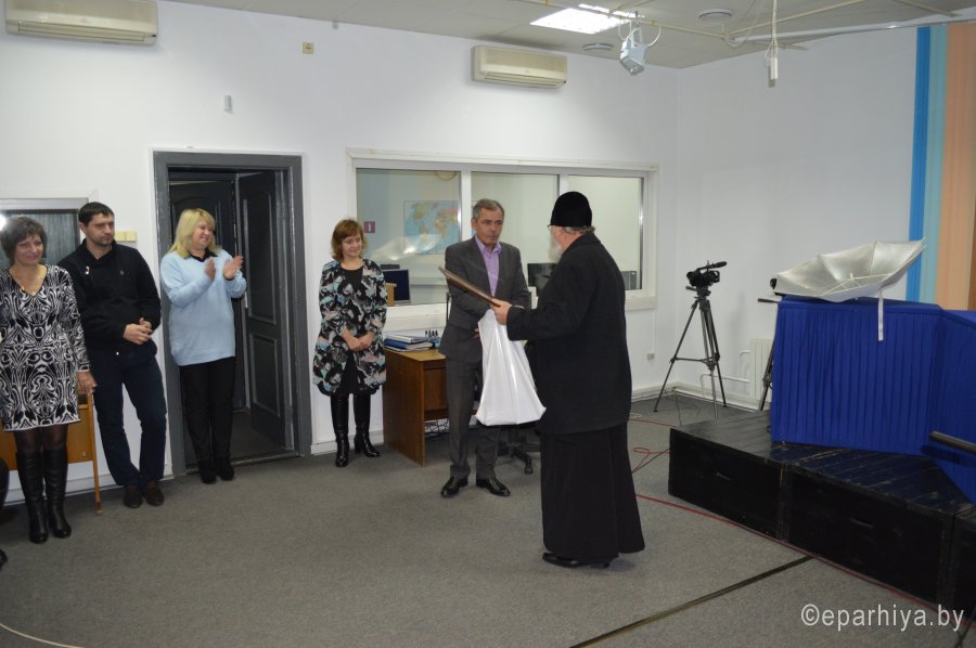 В этом году предприятие ОАО «Телекомпания «Телевид», г. Речица отмечает свое двадцатипятилетие. Начав четверть века назад с трансляции программы «Речица ТВ» в сети коллективного приема телевидения в Днепровском и Центральном микрорайонах города, сегодня компания вещает в цифровом формате стандарта DVB-C и охватывает всю территорию Речицы и часть Речицкого района. Пакет телевизионных программ увеличен до 70 каналов, потенциальная аудитория – 100 000 человек. Компания и ее сотрудники не раз становились призерами и победителями всевозможных конкурсов, достигая профессиональных высот. Предприятие успешно развивается и активно сотрудничает с приходами Речицкого благочиния. 24 ноября в год 25-летия по благословению Преосвященейшего Стефана, епископа Гомельского и Жлобинского, благочинный Речицкого округа, протоиерей Алексий Пешко, поздравил коллектив ОАО «Телекомпания «Телевид», г. Речица, с 25-летием со дня основания компании. От лица Преосвященного владыки священник вручил архиерейскую грамоту, а каждому сотруднику преподнес в благословение от владыки святой образ Пресвятой Богородицы "Казимировская". |