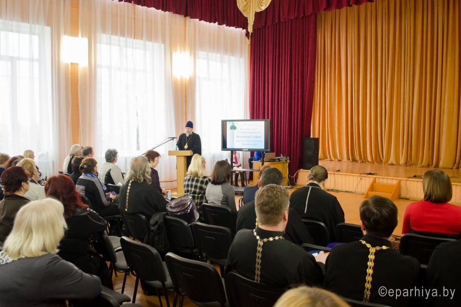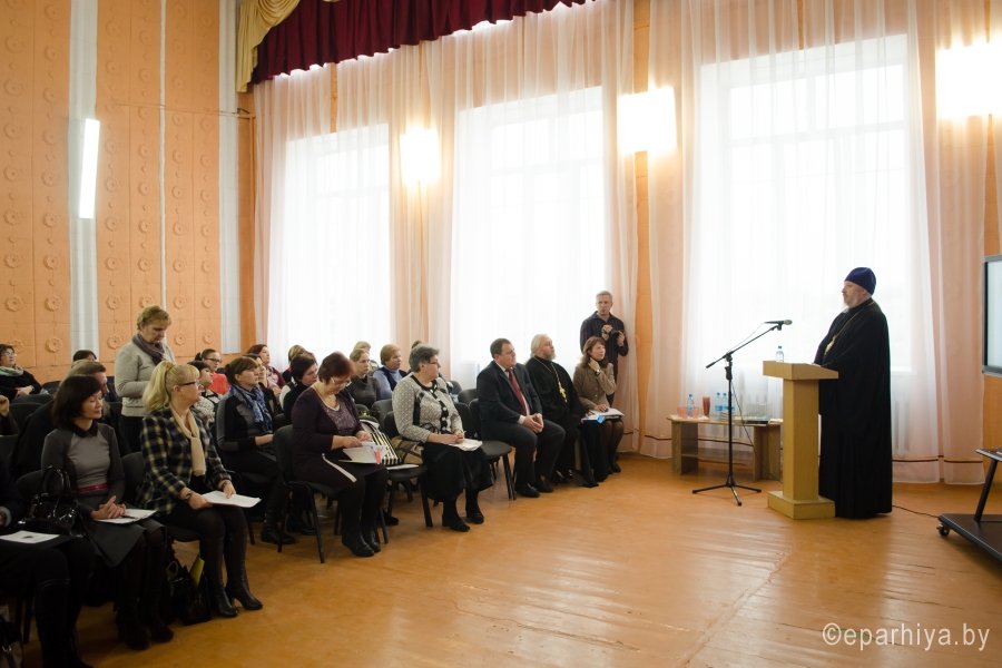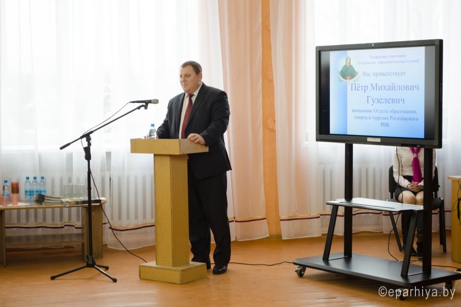 25 ноября 2015 года в г. Рогачёве на базе ГУО «Средняя школа №2 имени В.М. Колесникова» состоялись I районные Покровские образовательные чтения на тему: «Соработничество школы и Церкви: пути духовно-нравственного воспитания учащихся. Проблемы и перспективы». Форум организован Гомельской епархией и Рогачёвским благочинием при содействии Рогачёвского отдела образования, спорта и туризма. Его цель – обобщить уже наработанный опыт совместной деятельности Церкви и учреждений образования по возрождению духовно-нравственных ценностей белорусского народа. Это подчеркнул в приветственном слове начальник Рогачёвского отдела образования, спорта и туризма Гузелевич Пётр Михайлович. К участникам Чтений обратился епископ Гомельский и Жлобинский Стефан. Владыка отметил, что важнейшей задачей нынешнего времени является воспитание в молодых людях правильных духовных ориентиров и педагогам необходимо прилагать максимум усилий, чтобы их воспитанники помнили, кто они и откуда они родом. Эту мысль развивала в своём выступлении координатор отдела по связям с общественностью при отделе РОиК Гомельской епархии Наталья Сергеевна Жгирова. Она отметила, что её корни связаны с Рогачёвской землёй, рассказала о целях, формах и методах взаимодействия учреждений образования и приходов храмов. И.о.заведующего кафедрой общей и коррекционной педагогики ГУО «Гомельский областной институт развития образования» Татьяна Александровна Хорик в своём выступлении осветила актуальные вопросы деятельности учреждений образования в области духовно-нравственного воспитания. Она подчеркнула, что организация в школе празднования «хэллоуина», или поздравления с наступлением года «козы» или «обезьяны» в стране, имеющей богатую собственную культуру, не приемлема. О необходимости противостоять вызовам современного мира говорил в своем выступлении председатель отдела религиозного образования и катехизации Гомельской епархии протоиерей Вадим Кочан. Следующим блоком были представлены выступления, которые отражали опыт духовно-нравственного воспитания детей, накопленный в Рогачёвском районе. Благочинный Рогачёвского округа, настоятель прихода храма Святого благоверного князя Александра Невского рассказал о системе взаимодействия Рогачёвского благочиния и учреждений образования Рогачёвского района. Он подчеркнул, что мы, взрослые, должны познакомить детей не только с физическими, но и с духовными законами нашего мира. « В духовном мире тоже есть свои законы, и их несоблюдение тоже может привести сначала к смерти духовной (что еще страшней), а затем и к физической. Нужно знать правила, нужно знать законы духовного мира. Эти законы, эти правила хранит в себе Православная вера, Православная Церковь. И не просто хранит, а пытается донести их до каждого человека». Нести эти знания детям призваны педагоги. Заведующий ГУО «Ясли-сад №7» Маголло Т. М. познакомила участников с опытом взаимодействия учреждений дошкольного образования и православных приходов в духовно-нравственном воспитании детей. «Очень хотелось бы надеяться, что наш труд позволит нам выйти на главный результат, который заключается в усвоении ребенком вечных ценностей: милосердия, сострадания, трудолюбия, стремления к добру и неприятия зла»,- отметила в своём выступлении Татьяна Михайло