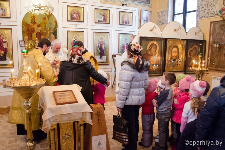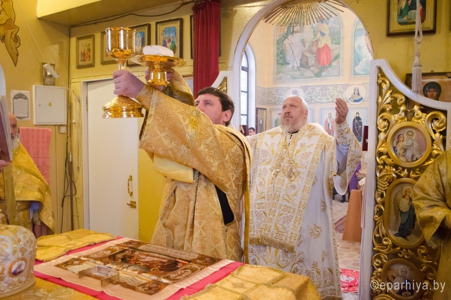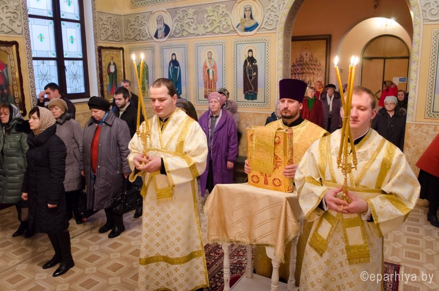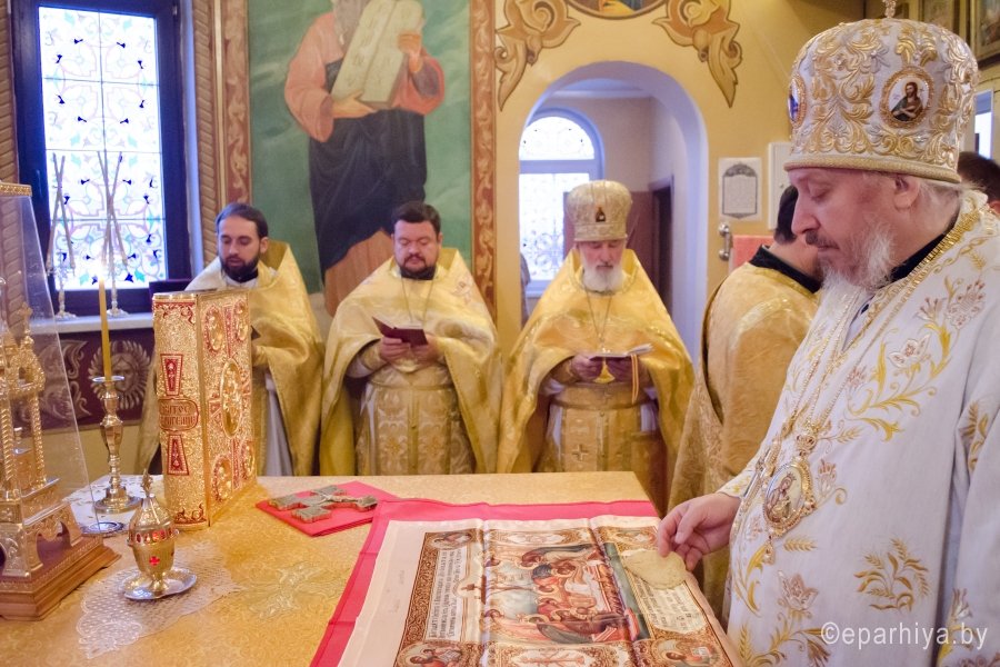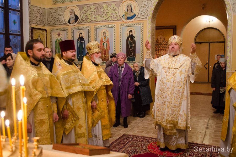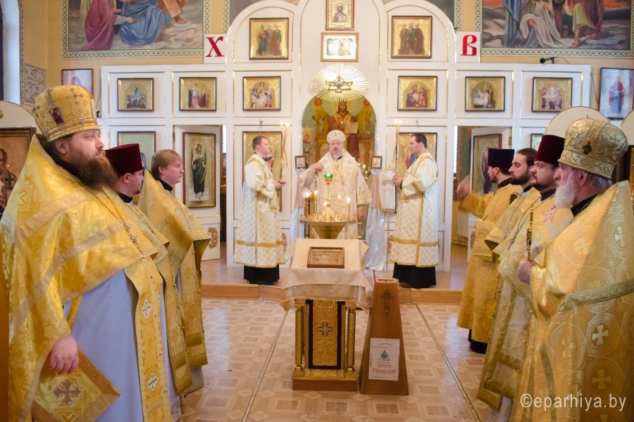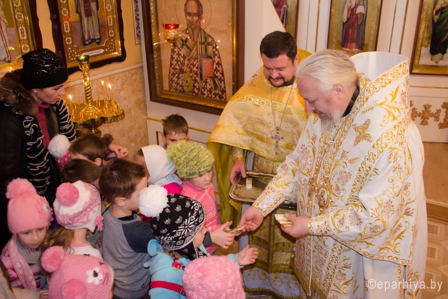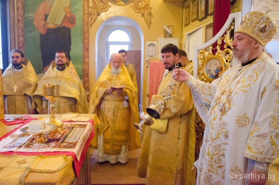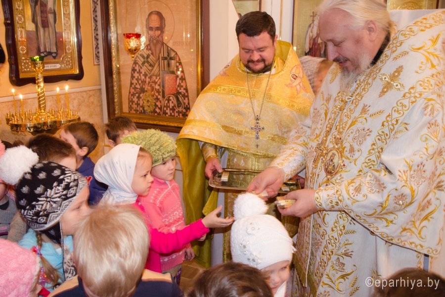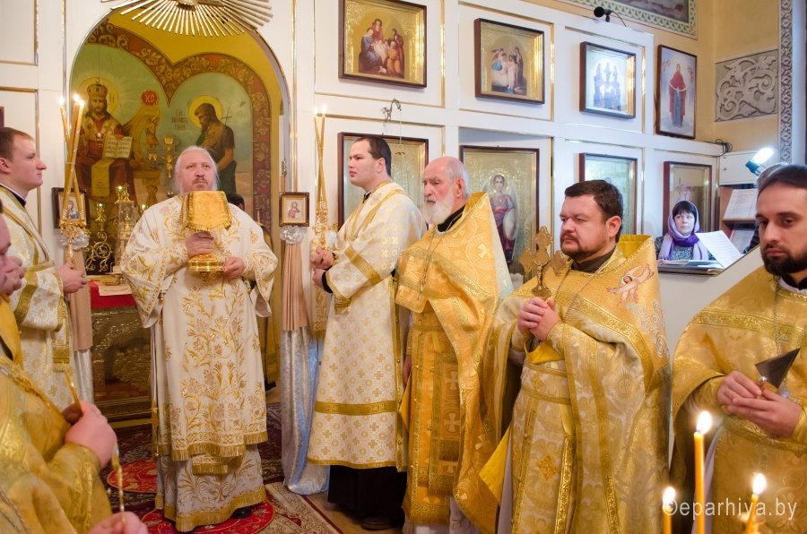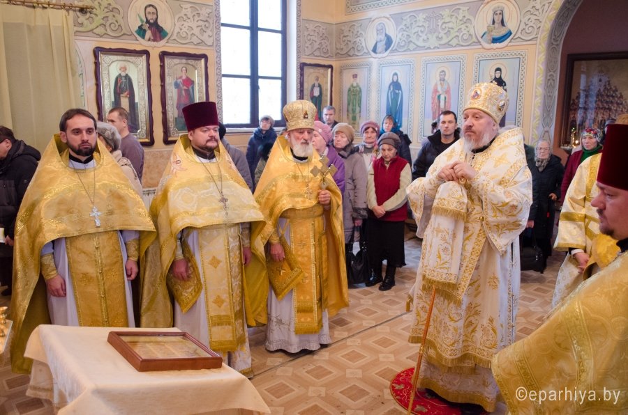 27 ноября 2015г., в день памяти святого апостола Филиппа, Преосвященнейший Стефан возглавил Божественную литургию в храме Преображения Господня г.Гомеля. Преосвященному сослужили: благочинный Гомельского городского благочинного округа протоиерей Стефан Гладыщук, благочинный монастырей Гомельской епархии, наместник Свято-Никольского мужского монастыря г.Гомеля архимандрит Амвросий (Шевцов), настоятель и духовенство Спасо-Преображенского храма г.Гомеля. За Литургией маленькие прихожане храма причастились Святых Христовых Тайн и получили из рук Владыки сладкие подарки. По окончании богослужения, обращаясь со словами Архипастырского назидания Владыка пожелал всем достойно пройти поприще Рождественского Поста и достойно встретить праздник Рождества Христова. В ходе визита в приход Преосвященный Владыка ознакомился с ходом строительства Спасо-Преображенского собора г.Гомеля. |