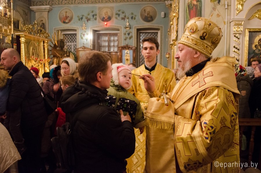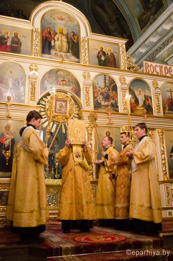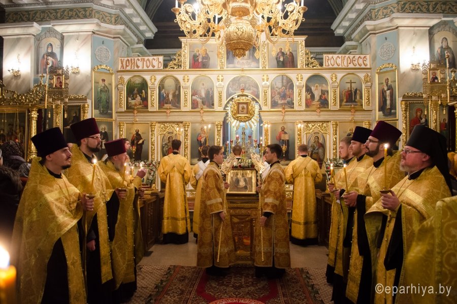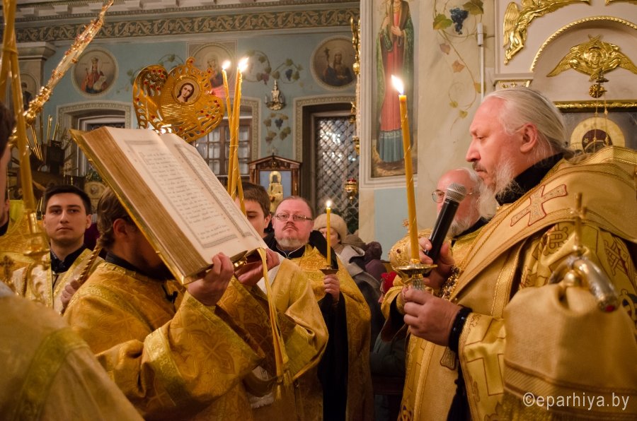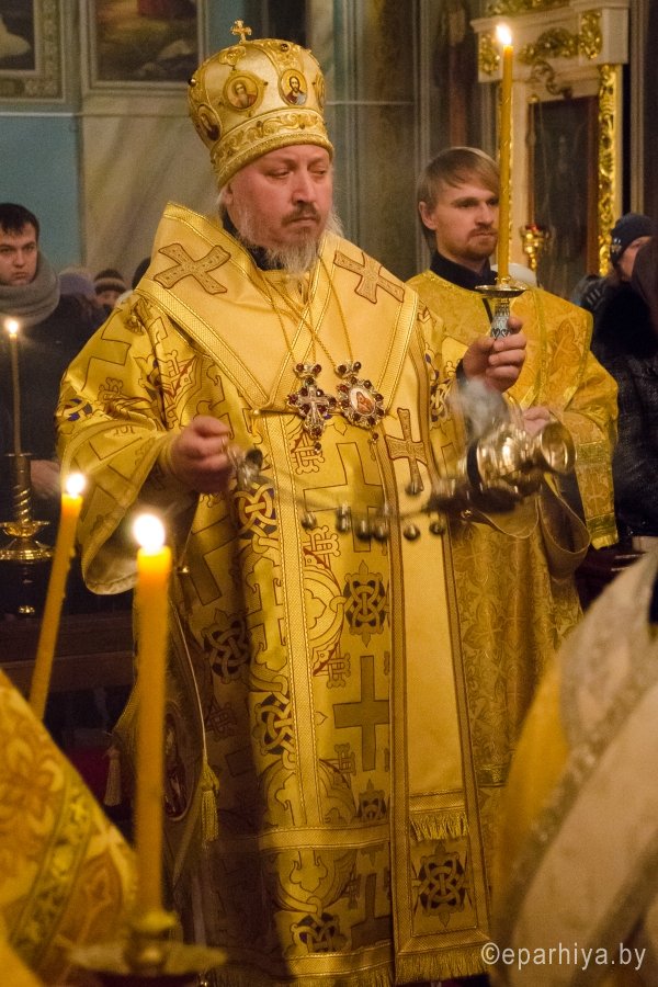 28 ноября 2015г., в канун дня памяти апостола и евангелиста Матфея, Преосвященнейший Стефан в сослужении духовенства собора возглавил всенощное бдение в Свято-Петро-Павловском кафедральном соборе г.Гомеля. По окончании богослужения Владыка обратился к молящимся со словами Архипастырского назидания и благословил всех Святым Образом. |