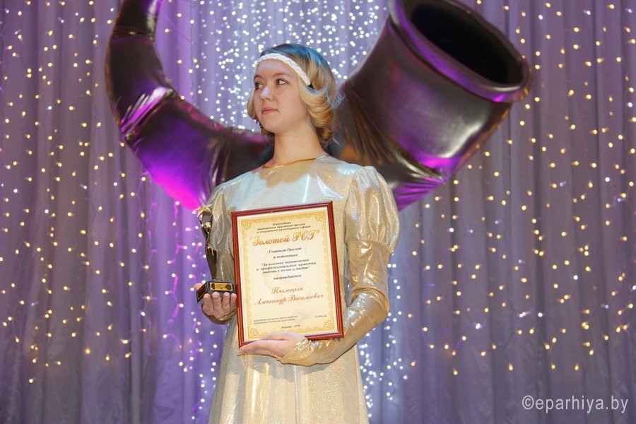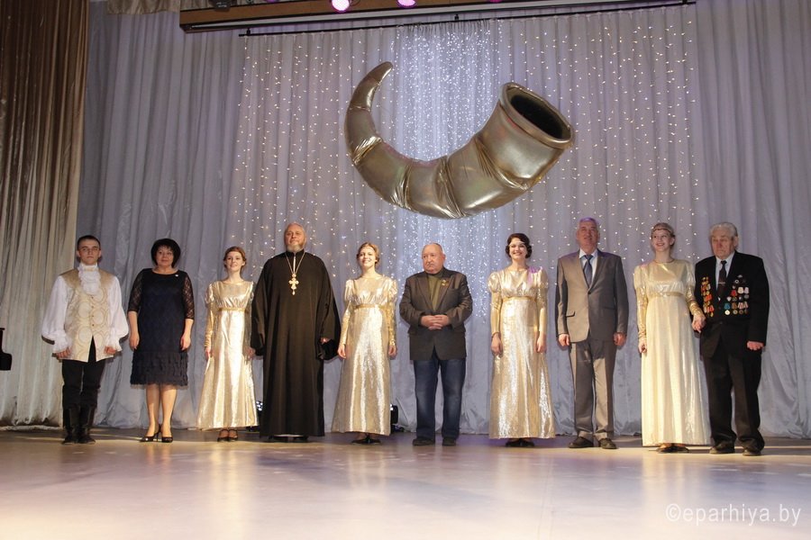 В 19-й раз, в дни празднования Рождества Христова, в городе Рогачеве проходит церемония награждения горожан за духовное возрождение своей малой Родины под общим названием «Золотой Рог». В нынешнем году праздник оказался наиболее масштабным. Открыл мероприятие председатель Рогачевского райисполкома Сергей Владимирович Яковлев. После его слов с приветствием к собравшимся обратился благочинный Рогачевского округа Гомельской епархии протоиерей Алексей Смотрицкий. Награждение проходило в виде театрализованного шоу, перемежаясь с номерами художественной самодеятельности. По окончании процедуры вручения наград в честь номинантов 2014 года прогремел праздничный салют. |