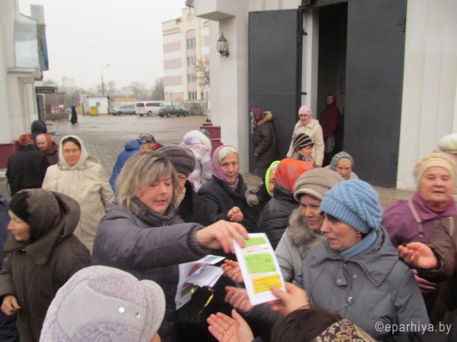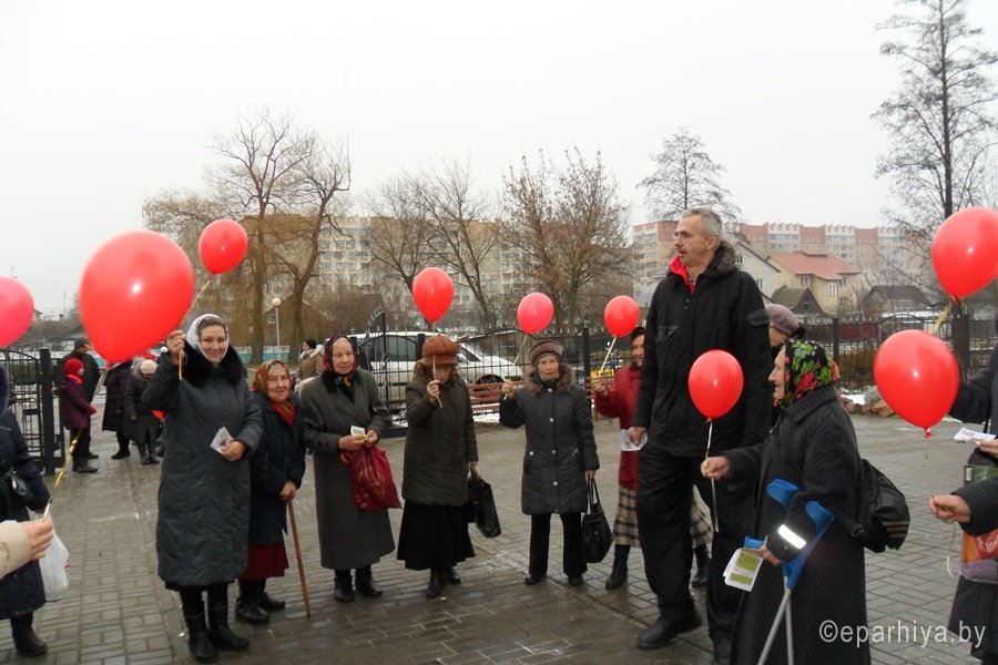 По благословению епископа Гомельского и Жлобинского Стефана 29 ноября 2015 года накануне Всемирного дня борьбы со СПИДом во всех храмах епархии был отслужен молебен о здравии людей, живущих с диагнозом ВИЧ/СПИД. По окончании молебна для прихожан храма Святого Архангела Михаила в г. Гомеле был организован концерт «Здоровье – это здорово!». Организаторами мероприятия выступили: отдел по взаимодействию с Вооруженными силами и правоохранительными органами Гомельской епархии, отдел по работе с молодежью Гомельской епархии и Свято-Петро-Павловский кафедральный собор г. Гомеля. В концерте приняли участие группа «Небаян», волонтеры ВТФ УО «БелГУТ», социальный педагог Гомельского областного центра коррекционно-развивающего обучения и реабилитации Лойко Т.Г., исполняющий обязанности руководителя отдела по работе с молодежью Гомельской епархии иерей Дмитрий Мельников, исполняющий обязанности помощника благочинного гомельского городского округа по молодежному служению иерей Александр Савков, координатор по молодежному служению Свято-Петро-Павловского кафедрального собора г.Гомеля Жданова Н.Н и ее коллеги. По окончании концерта прихожане храма отпустили в небо воздушные шары красного цвета – в знак поддержки людей с положительным ВИЧ-статусом. Но на этом мероприятия не закончились. В формате круглого стола состоялась встреча с координатором-консультантом по вопросам жизни с ВИЧ и лечения Кодис Н.Г. Тема обсуждения «ВИЧ-мифы и реальность». Каждый из собравшихся имел возможность написать слова поддержки для людей с положительным ВИЧ-статусом. «Цель подобных мероприятий – преодоление информационного барьера и оказание поддержки людям с положительным ВИЧ-статусом. Каждый выбирает для себя дорогу, по которой пойти, слова для любви и молитвы. Каждый выбирает сам для себя, чью сторону выбрать – добра или зла. Выбор всегда за вами. Храни вас Бог!» – сказал в завершении протоиерей Игорь Ольшанов, настоятель храма Святого Архангела Михаила. Храм св.блг.кн. Александра Невского г.Гомеля Храм прп.Серафима Саровского г.Гомеля Свято-Успенский собор г.Речица Храм св.мч. Иоанна Воина г.Жлобин Храм иконы Божией Матери "Грузинская" Храм Преображения Господня г.Гомеля Храм св. прав. Иоанна Кормянского г.Гомель Храм прп.Серафима Саровского г.Жлобина Храм св.вмч. Пантелеимона Храм иконы Божией Матери "Иверская" |