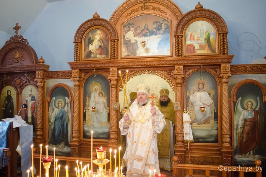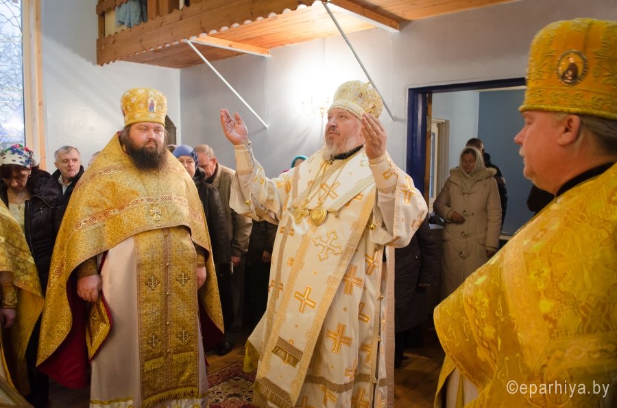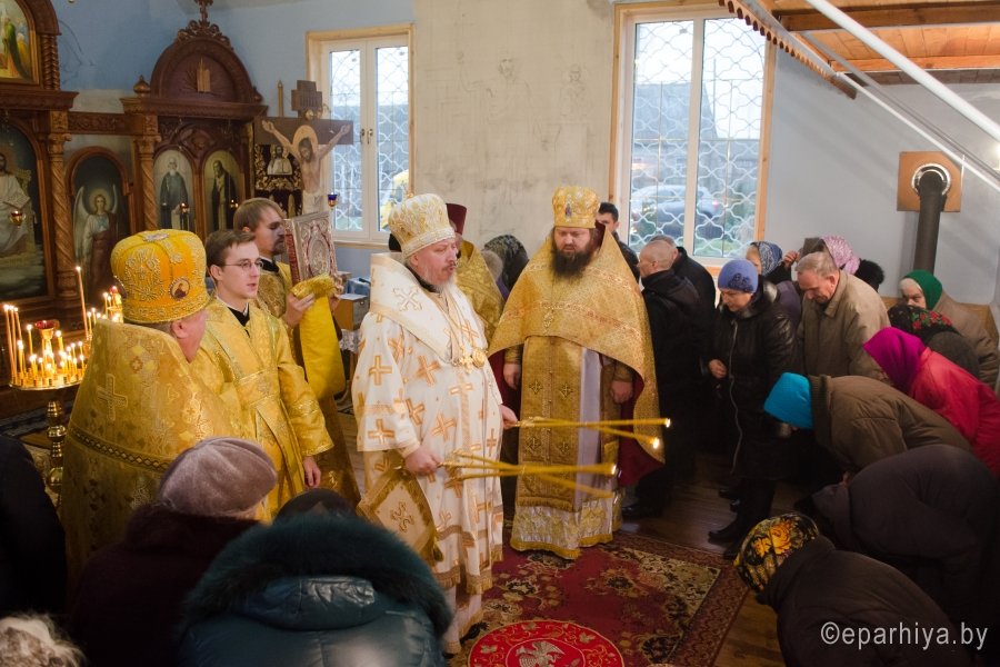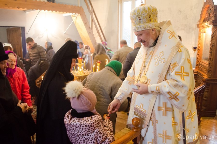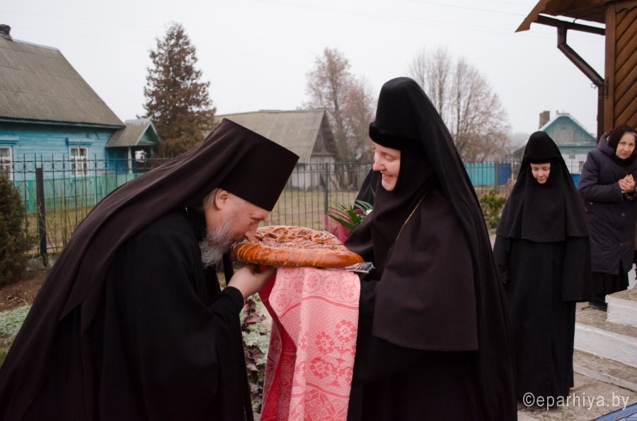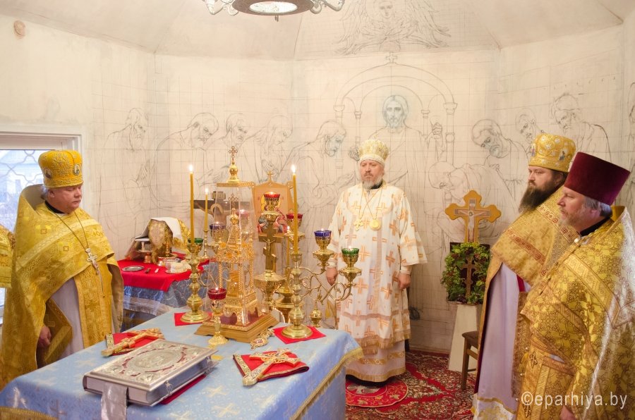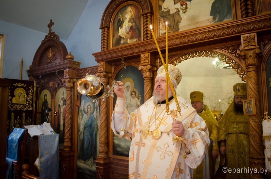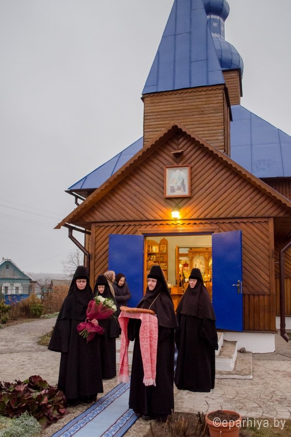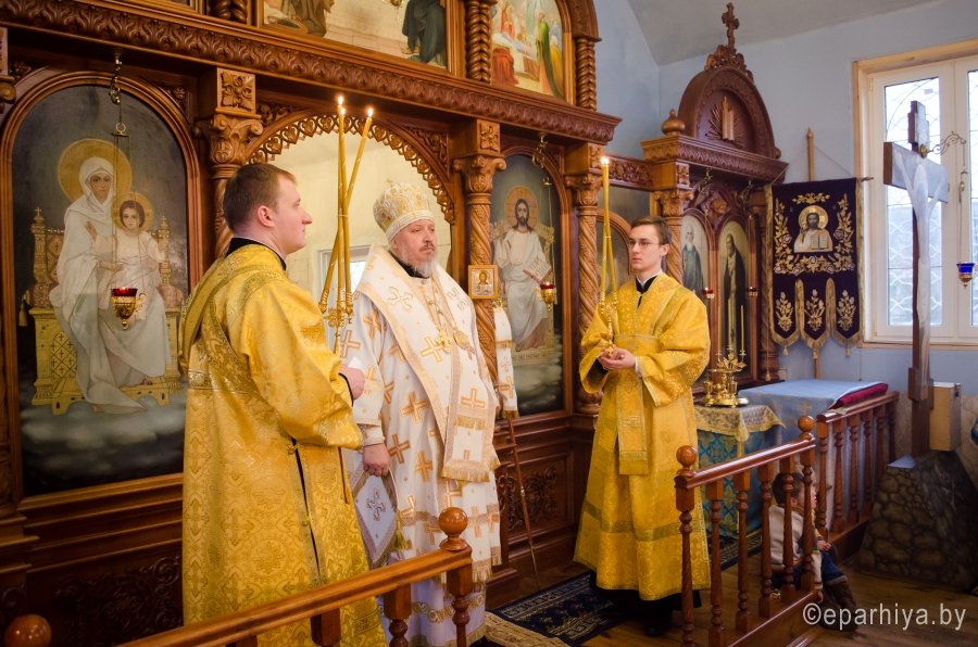 29 ноября 2015г., в день памяти апостола и евангелиста Матфея, Преосвященнейший Стефан возглавил Божественную литургию в Свято-Успенском монастыре д.Казимирово. Преосвященному сослужили: благочинный монастырей Гомельской епархии архимандрит Амвросий(Шевцов), благочинный Жлобинского благочинного округа протоиерей Василий Пилипенко и духовенство благочинного округа. За богослужением молилась игуменья монастыря Иоанна (Ярец) с сестрами. По окончании богослужения Владыка поздравил всех присутствующих с праздником и благословил Святым Образом. |