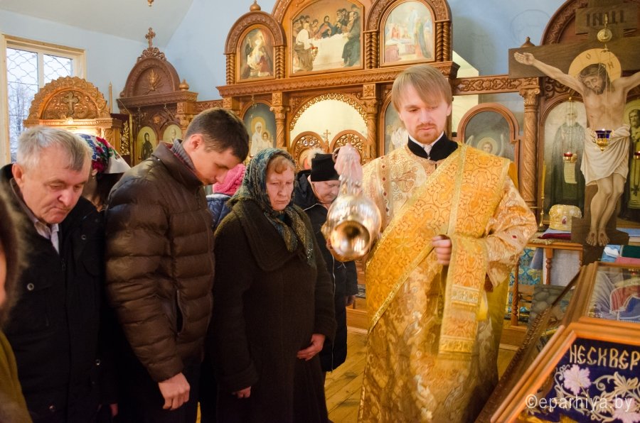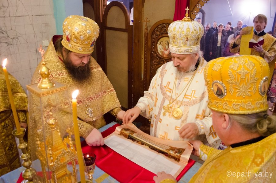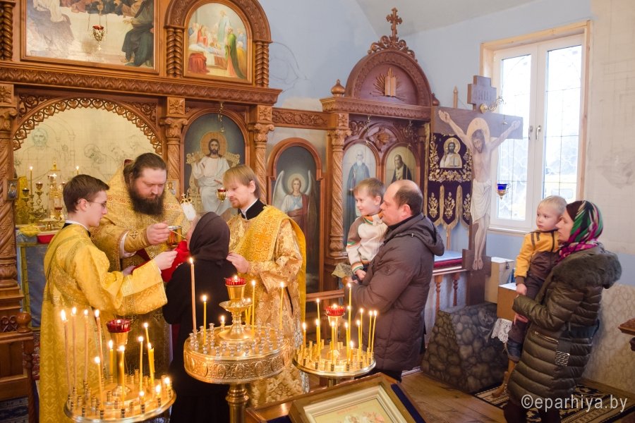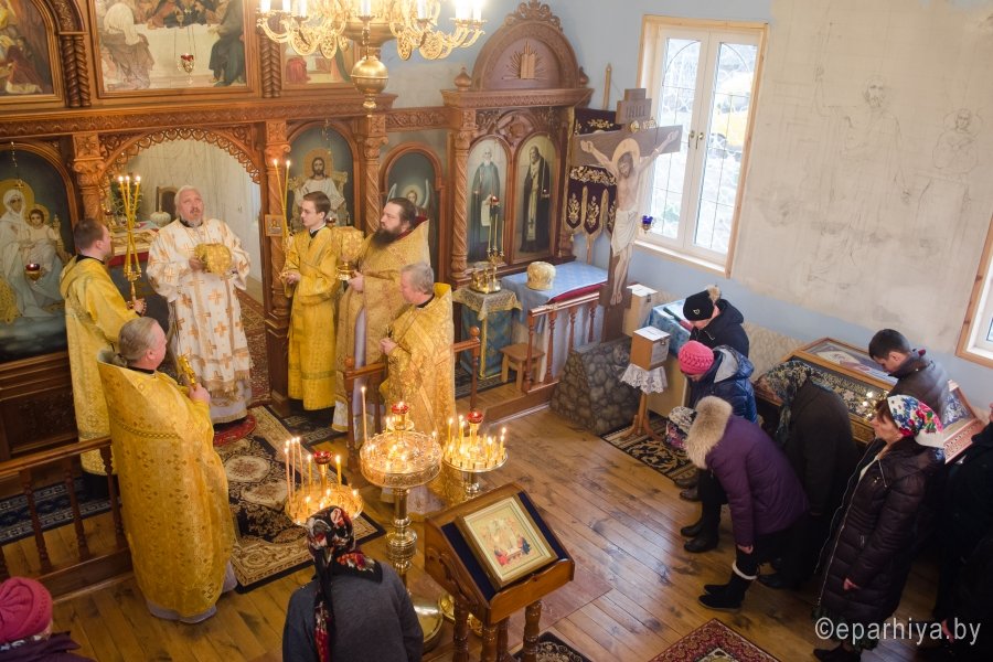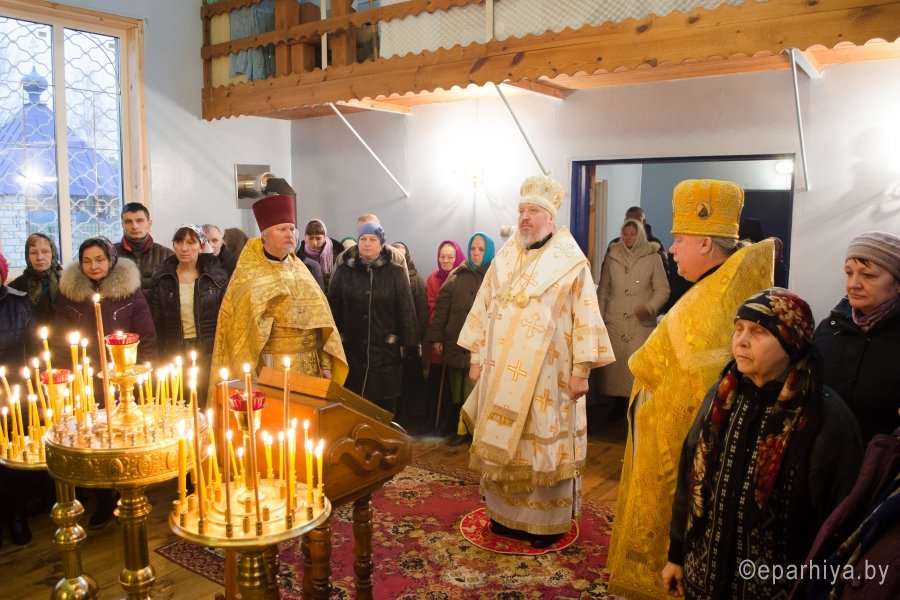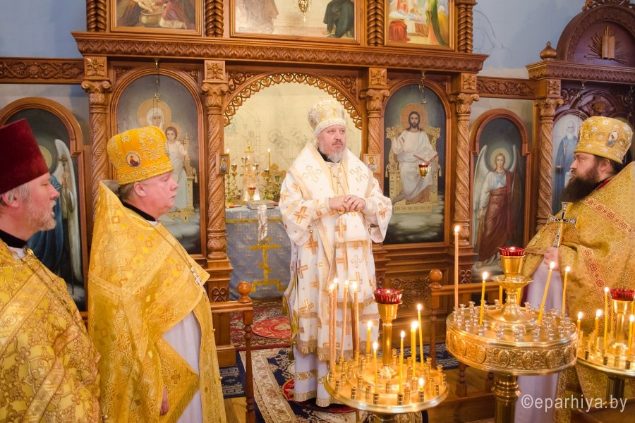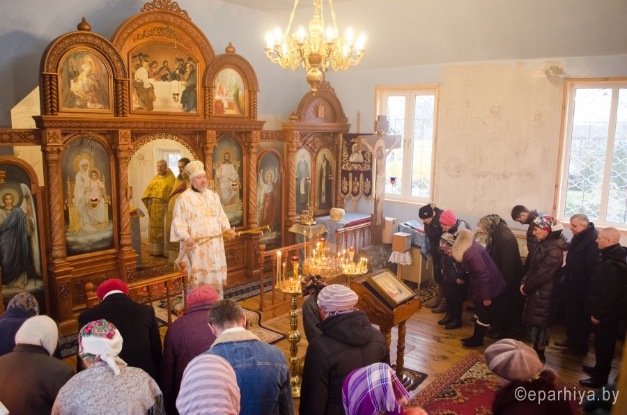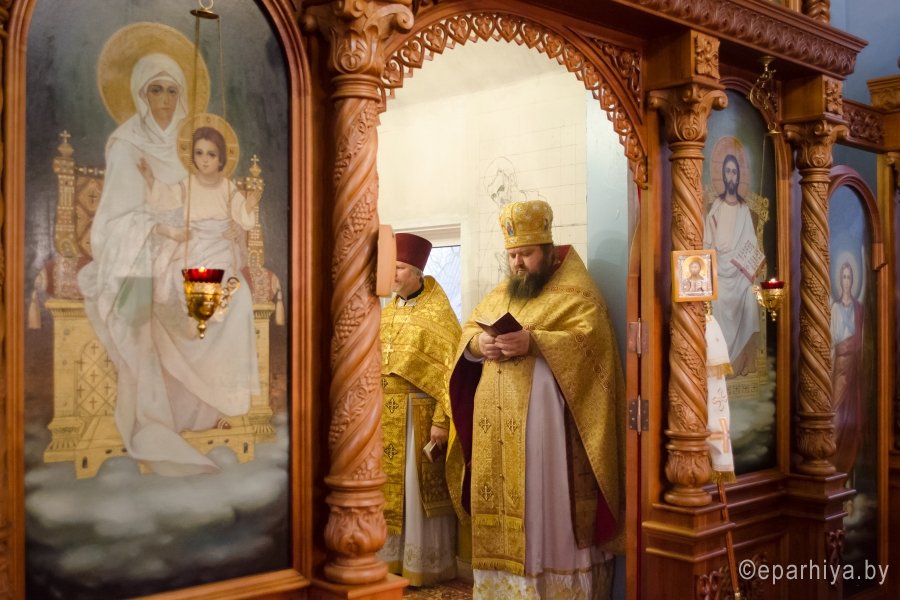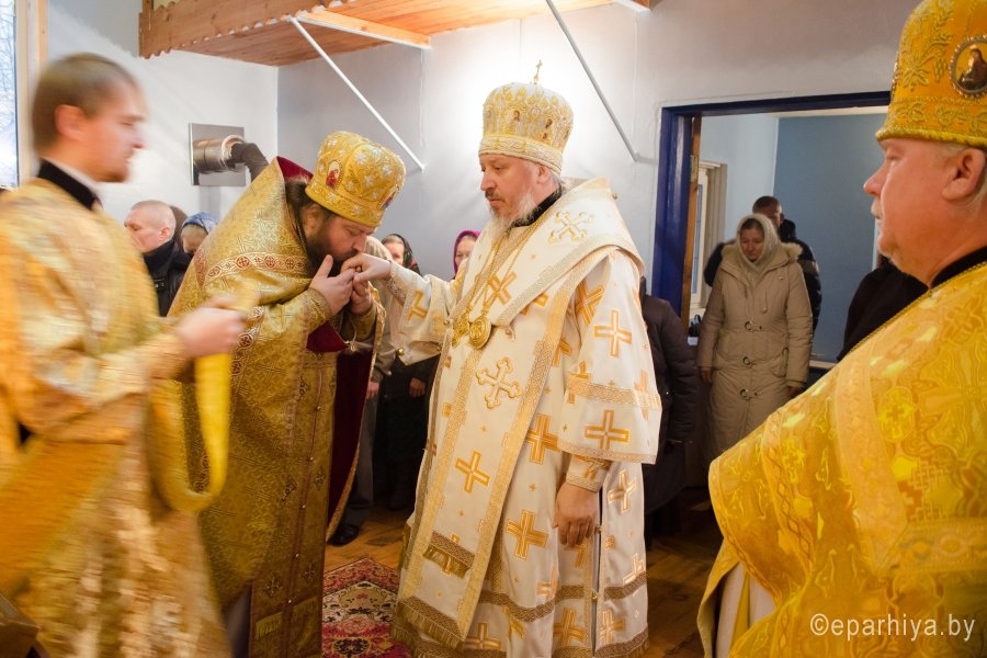 29 ноября 2015г., в день памяти апостола и евангелиста Матфея, Преосвященнейший Стефан возглавил Божественную литургию в Свято-Успенском монастыре д.Казимирово. Преосвященному сослужили: благочинный монастырей Гомельской епархии архимандрит Амвросий(Шевцов), благочинный Жлобинского благочинного округа протоиерей Василий Пилипенко и духовенство благочинного округа. За богослужением молилась игуменья монастыря Иоанна (Ярец) с сестрами. По окончании богослужения Владыка поздравил всех присутствующих с праздником и благословил Святым Образом. |
