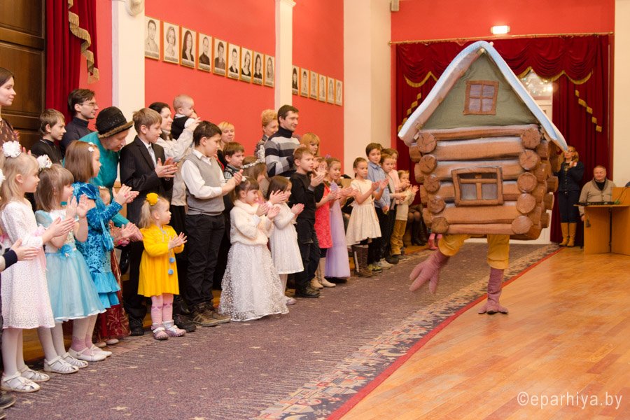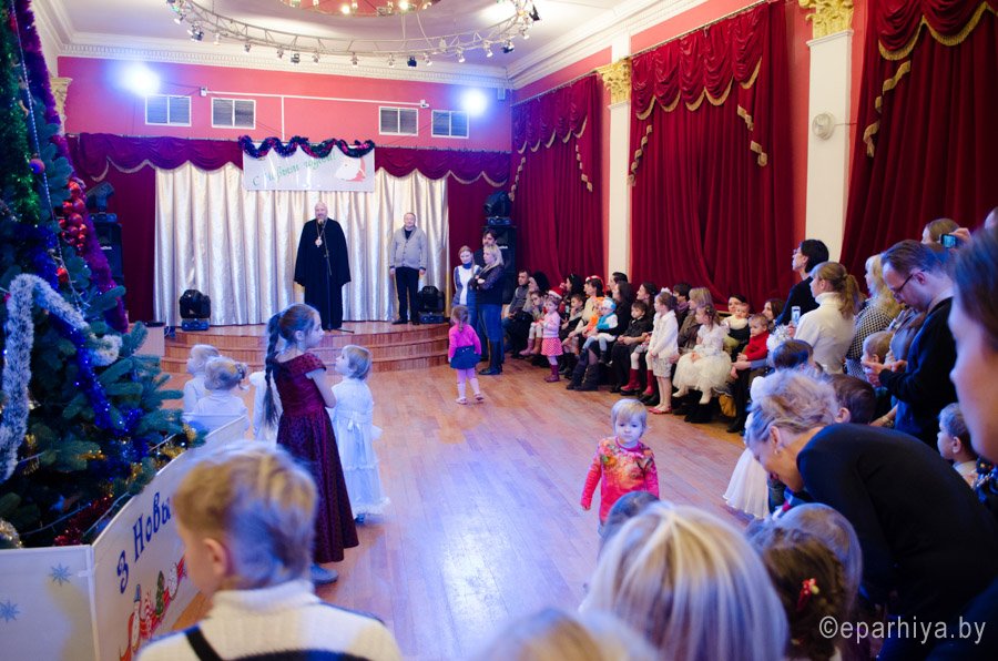 8 января 2015 года в Гомельском театре кукол прошла Рождественская Архиерейская елка для детей из православных семей. В мероприятии непосредственное участие принял Преосвященный Стефан, епископ Гомельский и Жлобинский. В своем приветственном слове к собравшимся Владыка отметил, что проведение подобных рождественских празднований является традиционным и сердечно поздравил присутствующих с праздником Рождества Господа и Спаса нашего Иисуса Христа. Кроме того, епископ Стефан указал, что Гомельская епархия давно и плодотворно сотрудничает с Гомельским театром кукол, руководство которого оказывает всестороннюю поддержку проведению епархиальных мероприятий. Нынешняя Рождественская Архиерейская елка стала настоящим подарком для ребят. Им была продемонстрирована красочная театрализованная постановка с участием сказочных персонажей, а также костюмированное шоу. |