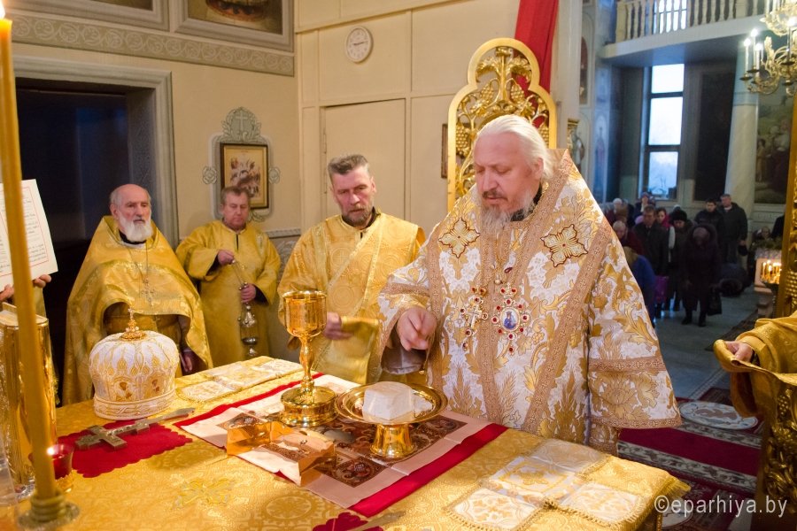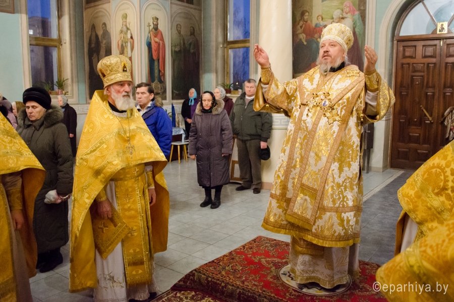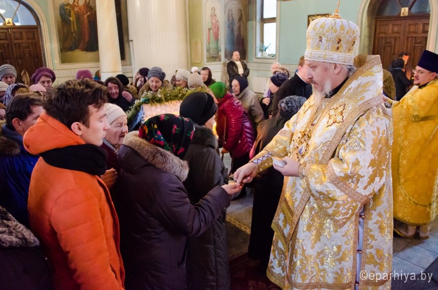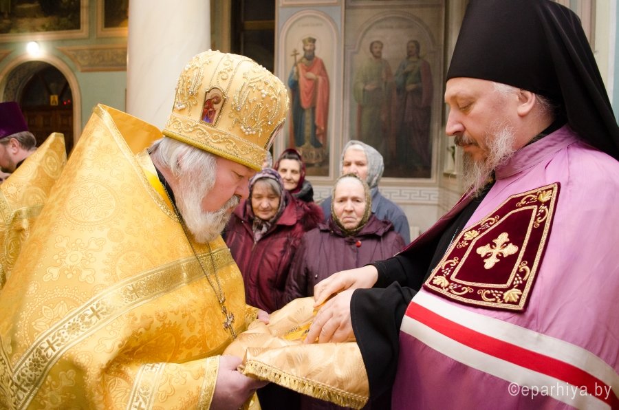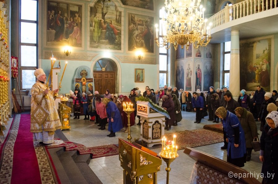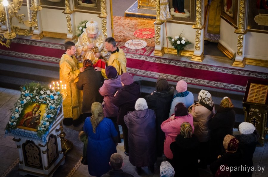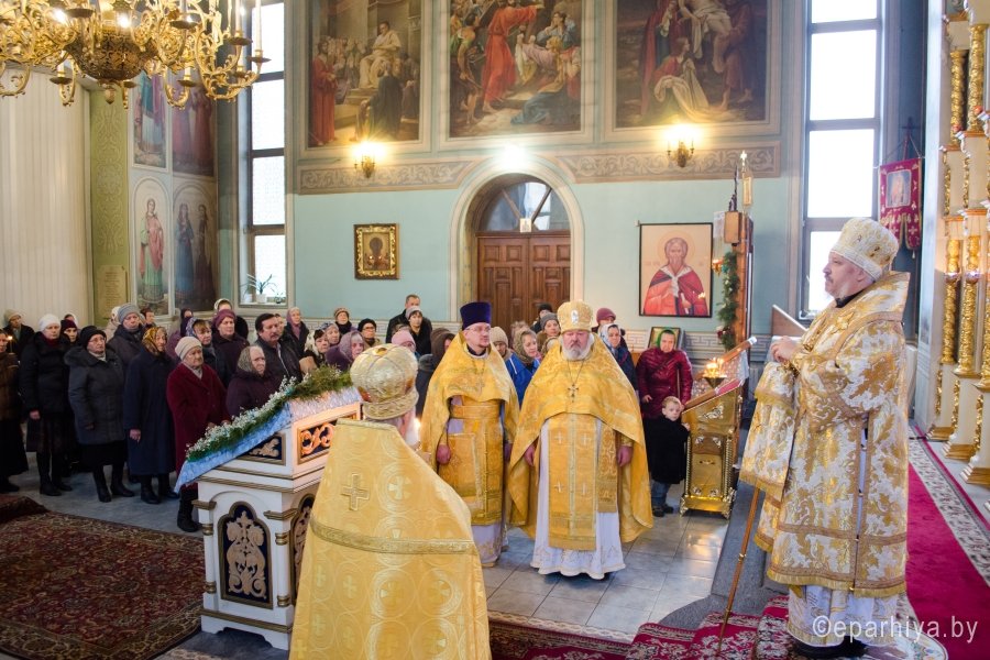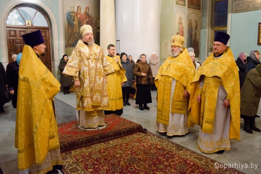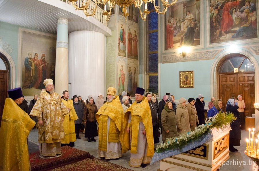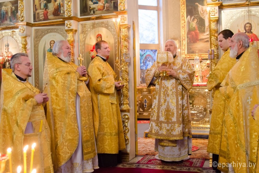 11 декабря 2015г. Преосвященнейший Стефан возглавил Божественную литургию в храме иконы Божией Матери "Иверская" г.Гомеля. Преосвященному сослужили: благочинный Гомельского городского благочинного округа протоиерей Стефан Гладыщук, настоятель храма Иверской иконы Божией Матери г.Гомеля протоиерей Георгий Тур и духовенство прихода. По окончании богослужения Владыка обратился к молящимся со словами проповеди и благословил всех Святым Образом. |