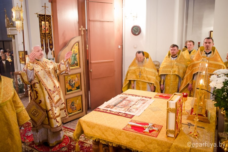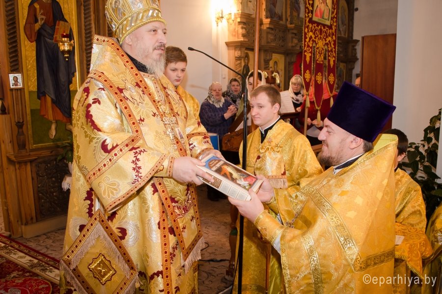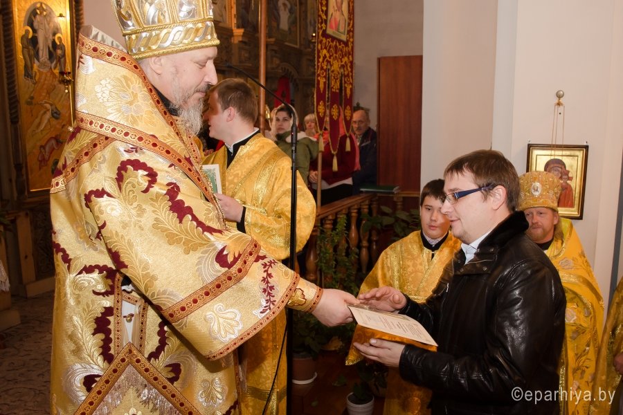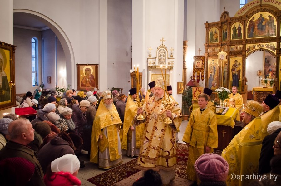12 декабря 2015г. Преосвященнейший Стефан возглавил Божественную литургию в Спасо-Преображенском храме г.Светлогорска. Преосвященному сослужили: благочинный Светлогорского благочинного округа протоиерей Владимир Семенов и духовенство прихода. По окончании богослужения Владыка обратился к молящимся со словами Архипастырского назидания и благословил всех Святым Образом. |