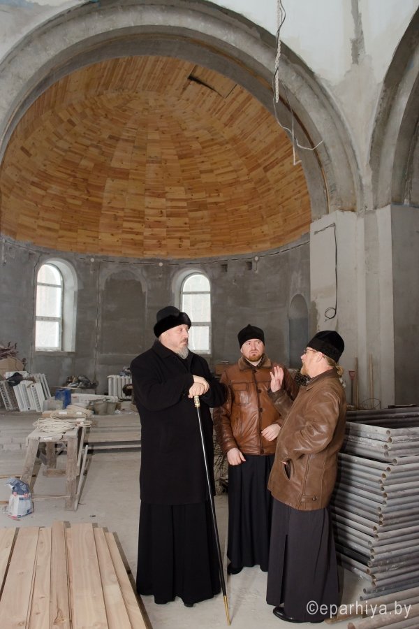 12 декабря 2015г., в ходе своего визита в Светлогорский благочинный округ, Преосвященнейший Стефан в сопровождении благочинного округа протоиерея Владимира Семенова совершил рабочую поездку в строящийся храм святителя Кирилла Туровского г.Светлогорска. Настоятель прихода протоиерей Сергий Кисель ознакомил Владыку с ходом строительных работ и состоянием дел на приходе. |