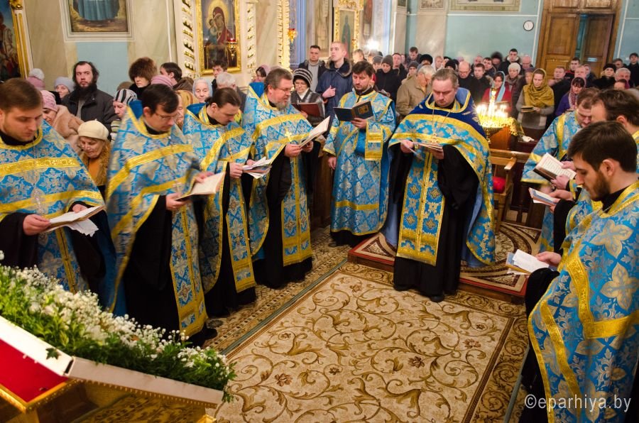 15 февраля 2015г. ключарь Свято-Петро-Павловского кафедрального собора г.Гомеля протоиерей Андрей Шихалов, в сослужении духовенства собора возглавил вечернее богослужение с чтением акафиста Пресвятой Богородице.По прочтении акафиста со словами проповеди ко всем молящимся обратился настоятель прихода храма Святой Живоначальной Троицы г.Гомеля протоиерей Петр Романенко.