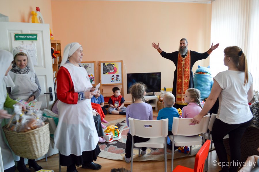 14 апреля 2015г., клирик Свято-Успенского собора г.Речицы, иерей Николай Савостьянов, совместно с сёстрами милосердия в честь святой мученицы Татианы, посетили отделение районной больницы и социально-педагогический центр г.Речицы с праздничным концертом. На празднестве звучали Пасхальные песнопения, а по завершении концерта все участники торжества получили куличи и пасхальные яйца.