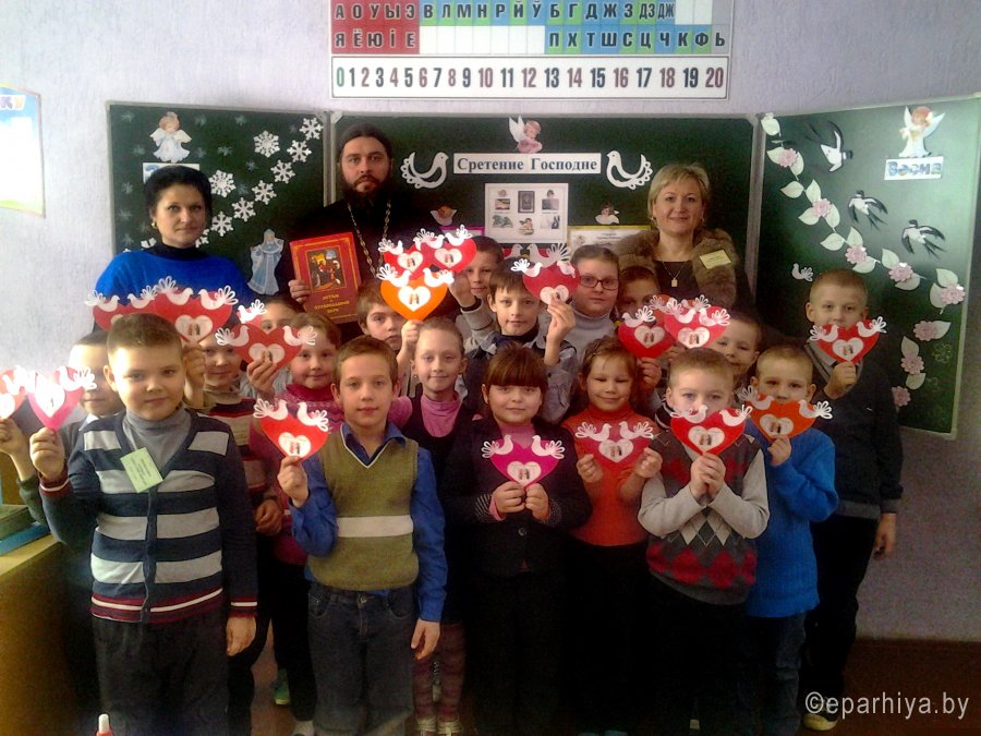 12 февраля 2016 года настоятель Свято-Никольского храма агрогородка Даниловичи иерей Андрей Булацкий посетил урок православной культуры в ГОУ «Даниловичский детский сад-начальная школа» Ветковского р-на, в котором реализуется Республиканский инновационный проект: «Внедрение модели формирования оптимистического типа мировосприятия у детей дошкольного и школьного возраста на православных традициях и ценностях белорусского народа».В рамках данного проекта, а также программы сотрудничества между ГОУ и Приходом Свято-Никольского храма прошел Открытый урок православной культуры, посвященный празднику Сретения Господня. На уроке присутствовала заведующая учреждения образования Скибунова Ирина Михайловна, а также учащиеся разных классов, учителя.