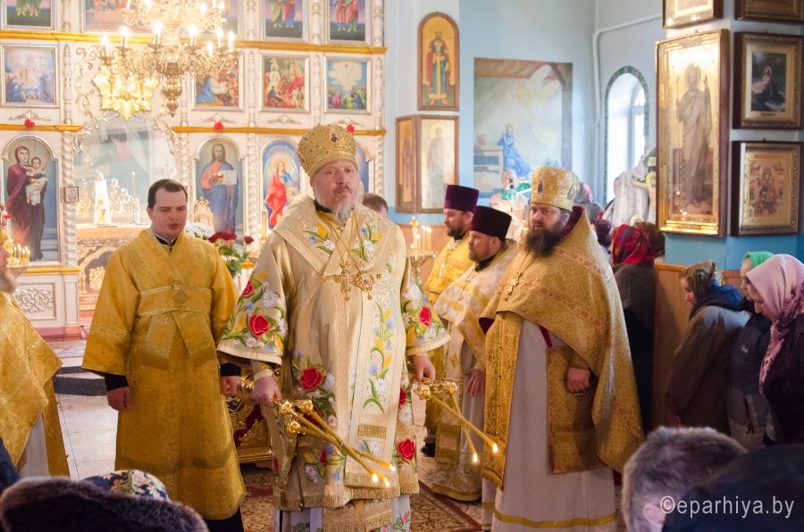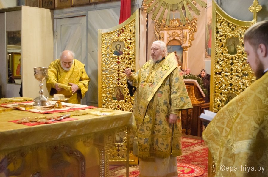 13 февраля 2016г. Преосвященнейший Стефан в сослужении духовенства собора возглавил Божественную литургию в Свято-Петро-Павловском кафедральном соборе г.Гомеля.По окончании богослужения Владыка возглавил акафистное чтение, поздравил причастников с принятием Святых Христовых Таин и преподал молящимся архипастырское благословение.