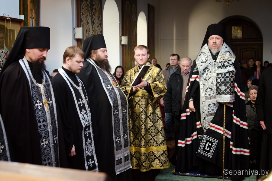16 марта 2016г. Преосвященнейший Стефан возглавил Божественную литургию Преждеосвященных Даров в Свято-Петро-Павловском кафедральном соборе г.Гомеля.Преосвященному сослужили: секретарь Гомельской епархии протоиерей Георгий Алампиев и духовенство собора.