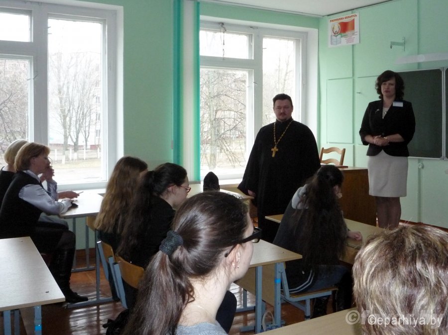 15 февраля 2016 года в «ГУО Тереховская СШ №1» для учеников 9 класса состоялся Час духовного разговора «Православная книга». Иеромонах Венедикт (Мажуко) рассказал ребятам о книгах, которые помогают понять Православие.