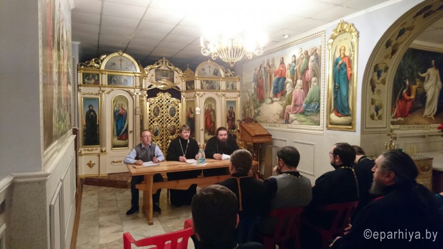 По окончании богослужения секретарь Гомельской епархии протоиерей Георгий Алампиев возглавил собрание духовенства Жлобинского благочинного округа.
