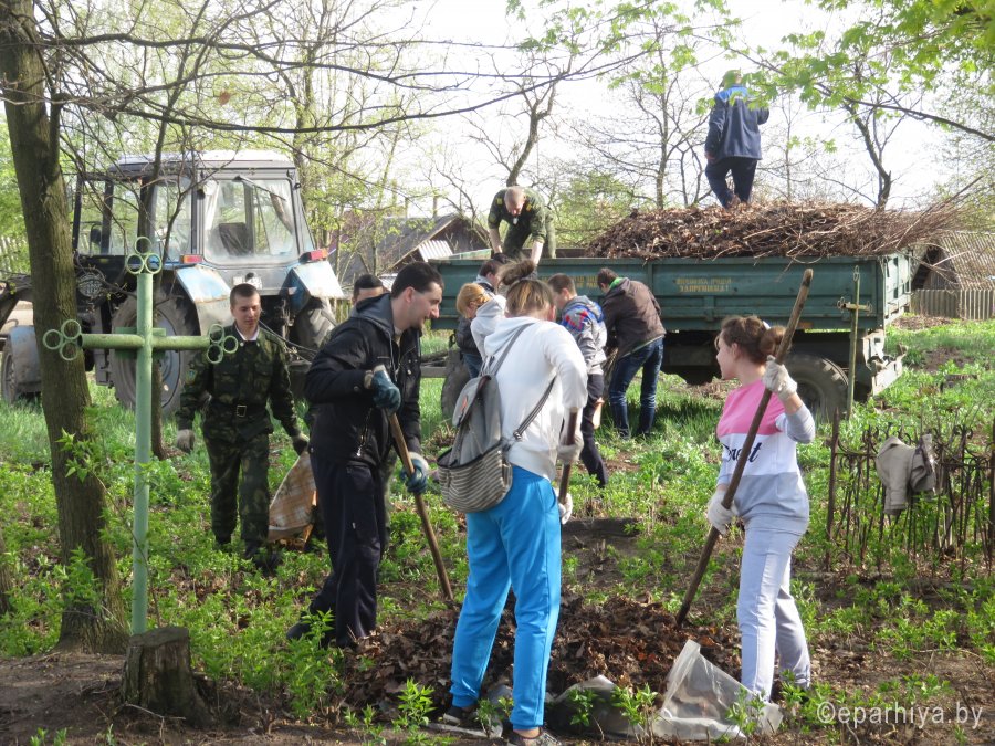 В преддверии Пасхи Христовой на приходах Речицкого благочиния проходят мероприятия по наведению должного порядка на кладбищах - в местах захоронения воинов, погибших в годы Великой Отечественной войны. Совместно с коллективами школ и сельпоселкомов принимают участие в этом душеполезном деле прихожане и священнослужители Речицкого округа. И может быть главное в этих мероприятиях даже не то, что облагораживаются могилы, а то, что в совместном труде люди прикасаются к нашей истории и это остаётся в памяти, а значит связь поколений не прерывается.