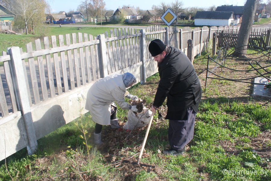 В преддверии праздника Светлого Христова Воскресения в Жлобинском благочинническом округе проводятся акции по приведению в порядок мест захоронений, братских могил и мемориальных комплексов.20 апреля 2016г прихожане храма св. мученика Иоанна Воина г. Жлобина приняли участие в уборке территории кладбища с. Кабановка Жлобинского района.