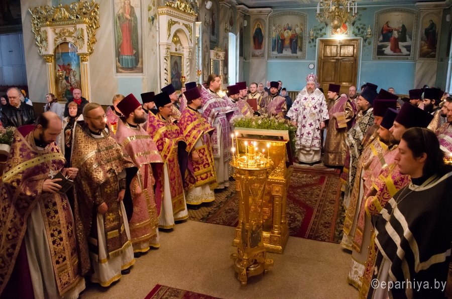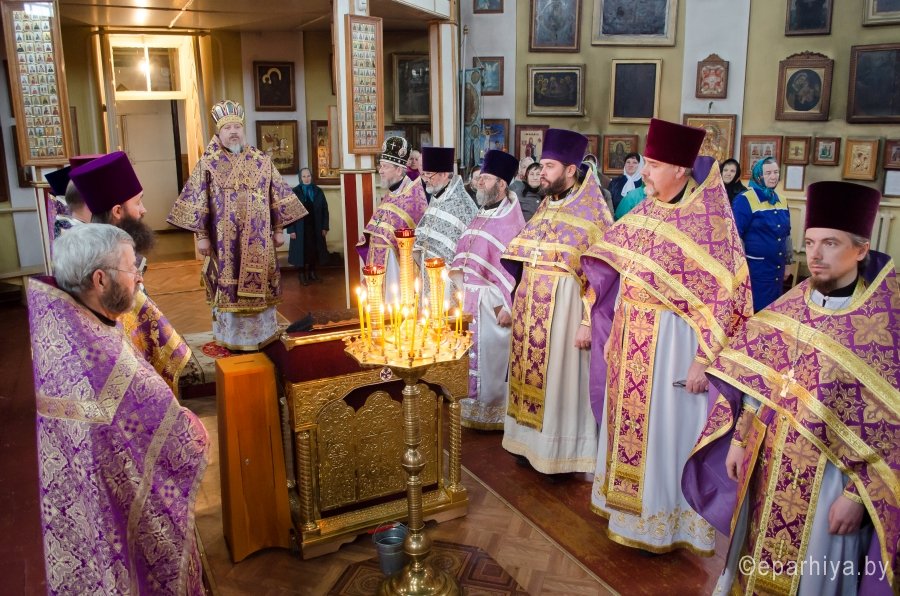 13 апреля 2016г., вечером, накануне дня памяти прп. Марии Египетской, Преосвященнейший Стефан совершил утреню с чтением Великого канона преподобного Андрея Критского в Свято-Петро-Павловском кафедральном соборе г.Гомеля.Преосвященнейшему сослужили клирики кафедрального собора.