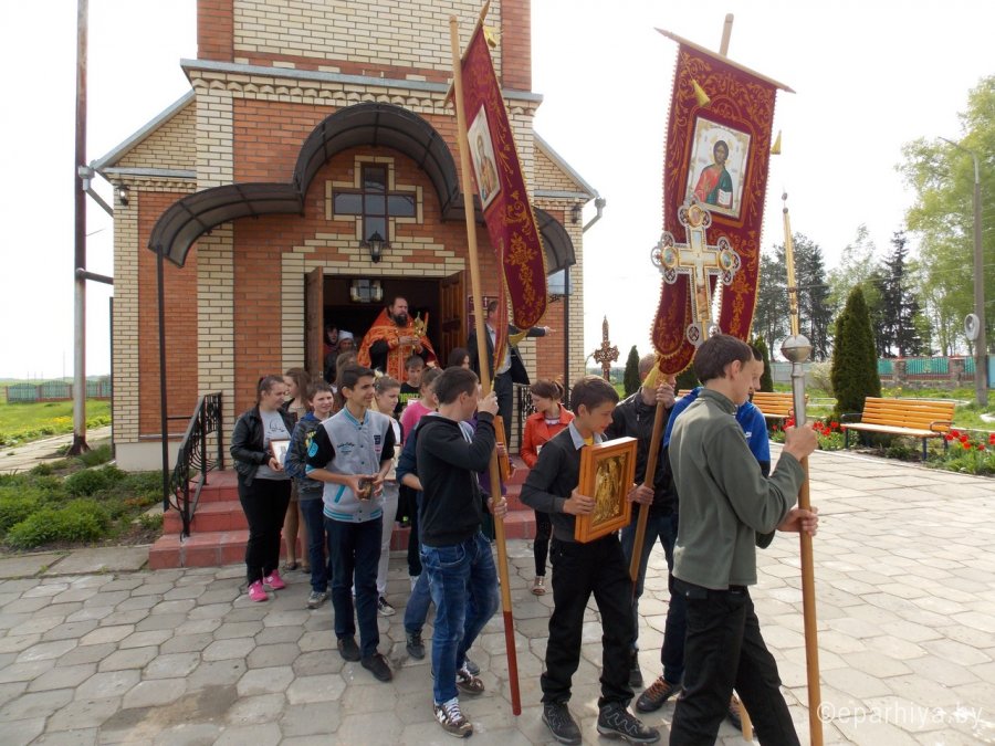 Уже третий год подряд во вторник Светлой седмицы, в день празднования Иверской иконы Божией Матери, приходят ученики Ровенскослободской средней школы в храм в честь Святого Архангела Михаила в аг.Ровенская Слобода Речицкого района. Настоятель храма, иерей Виталий Штойко, встречал 3 мая школьников. Священник рассказал ребятам о празднике Пасхи, о том почему двери Царских врат остаются открытыми всю Пасхальную седмицу, об Артосе - особом хлебе, освященном в Пасхальную ночь, который в продолжении всей Светлой седмицы занимает в храме самое видное место, вместе с иконой Воскресения Господня и, в заключение пасхальных торжеств, раздается верующим. Затем ребята приняли участие в Крестном ходе и смогли позвонить в колокола на колокольне храма.