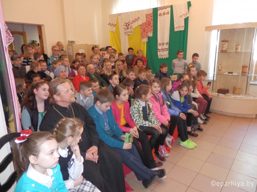 С наступающим праздником Пасхи всех присутствующих в зале поздравил настоятель храма Святых апостолов Петра и Павла г. Светлогорска протоиерей Владимир Семенов. Священник рассказал о значении слова Пасха, о том, как её праздновали во времена Ветхого Завета, и установлении Новозаветной Пасхи. Протоиерей Владимир пожелал участникам ярмарки добра, мира, терпения дабы достойно встретить светлое Христово Воскресение.