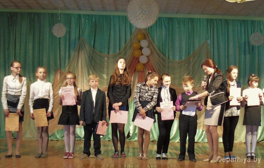 23 мая в ГУО "Средняя школа №4 г.Рогачева" подвели итоги школьного Пасхального фестиваля «Все у Бога в радости живём». В течение трёх недель ребята готовили пасхальные представления, принимали участие в школьных и районных конкурсах, прославляющих Светлое Христово Воскресение, встречах и беседах со священнослужителями храма святого благоверного князя Александра Невского. Победители районного конкурса художественного слова «Пасхальный перезвон» Велько Елизар и Матюшенко Александр, учащиеся 5 «А» класса, получили право стать ведущими церемонии закрытия школьного Пасхального фестиваля. Руководила церемонией Жевнерова Татьяна Михайловна, учитель белорусского языка и литературы. Первыми дипломы получили участники конкурса художественного слова «Славим Пасху Христову». Беляева Елизавета и Лускина Вероника ещё раз порадовали ребят своим исполнением пасхальных стихотворений. Музыкальное поздравление подарил образцовый вокальный ансамбль «Заряночка» под руководством Язвинской Марины Георгиевны, постоянный активный участник школьных и районных пасхальных фестивалей. Слова благодарности прозвучали в адрес третьеклассников и их учителей Марьяниной Натальи Анатольевны и Рязановой Ольги Фёдоровны, подготовивших замечательный праздник «Дорога к Воскресению». Самое активное участие ребята 1-11 классов приняли в конкурсе «Пасхальный сувенир» в двух номинациях «Пасхальная открытка» и «Пасхальное яйцо». Выставка их работ радовала глаз и создавала в школе пасхальное настроение на протяжение всего фестиваля. На прощание Татьяна Михайловна ещё раз поздравила всех с Праздником праздников , напомнила, что пасхальные дни продолжаются и пожелала сохранить светлое и радостное настроение фестиваля на долгое время.