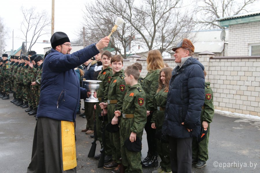 Благочинный Гомельского городского округа протоиерей Игорь Ольшанов также пожелал кадетам силы духа и Божьей помощи в преодолении спортивных заданий и окропил собравшихся Святой водой.