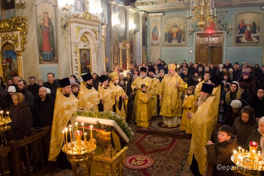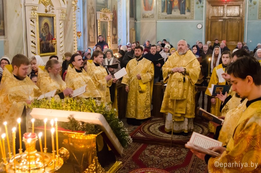 11 февраля 2017г., в канун Недели о блудном сыне, Преосвященный Стефан совершил всенощное бдение в Свято-Петро-Павловском кафедральном соборе г. Гомеля.Преосвященному сослужили: секретарь Гомельской епархии протоиерей Георгий Алампиев и духовенство собора.