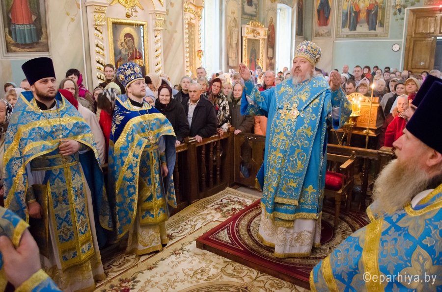 Вечером 6 апреля 2017г., в канун Благовещения Пресвятой Богородицы, Преосвященный Стефан совершил всенощное бдение в Свято-Петро-Павловском кафедральном соборе г. Гомеля.Преосвященному сослужили: секретарь Гомельской епархии протоиерей Георгий Алампиев и духовенство собора.