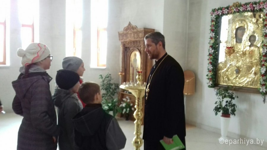 Настоятель храма иконы Божией Матери "Грузинская" г. Гомеля протоиерей Владимир Масалитин провел экскурсию по храму для учащихся ГУО "Средняя школа №15 г. Гомеля". Священнослужитель рассказал детям о храме, его архитектуре, иконах и стилях их написания, а также о помощи Богородицы и святых, к которым мы молитвенно обращаемся за помощью в наших жизненных обстоятельствах.