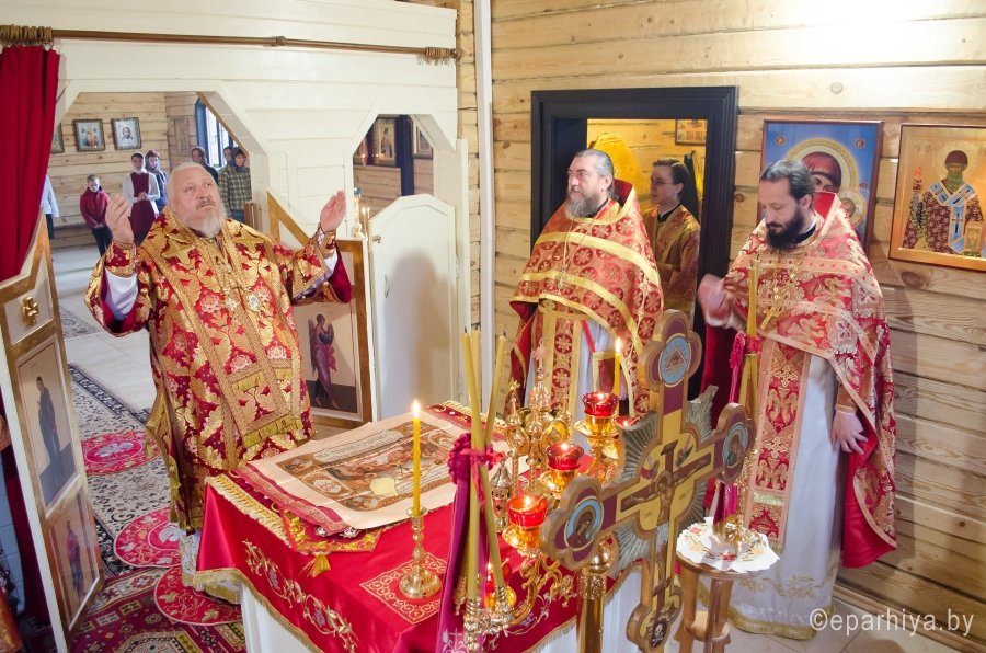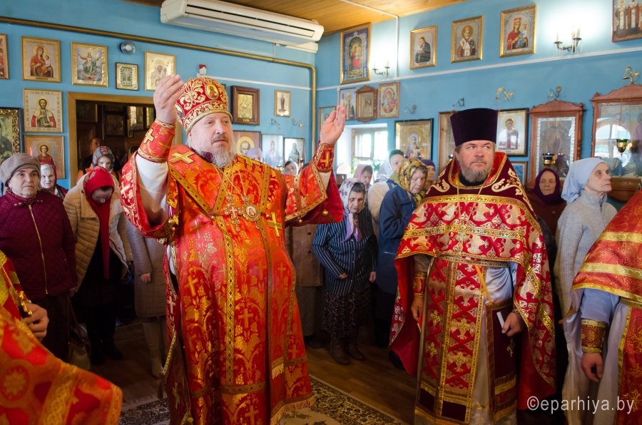 По окончании богослужения Владыка поздравил с Днем тезоименитства настоятеля храма свв. блгг. кнн. Петра и Февронии г. Гомеля иерея Вадима Капшука и обратился к молящимся со словами Архипастырского назидания. В память об этом дне Владыка раздал молящимся иконки.