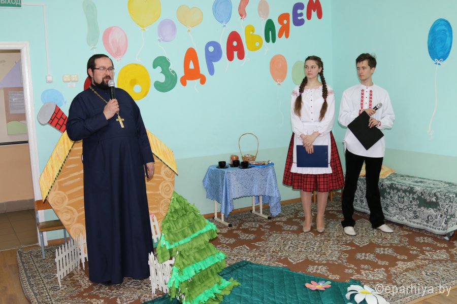 18 апреля 2017г., в Светлую Седмицу, по благословению Преосвященнейшего Стефана, епископа Гомельского и Жлобинского, протоиерей Николай Кадацкий, клирик храма Святой Живоначальной Троицы в г.Гомеле, помощник благочинного Гомельского городского округа по социальной деятельности совместно с Гомельским благотворительным общественным объединением «Ассоциация семей детей-инвалидов и молодых инвалидов с детским церебральным параличом и спинномозговыми патологиями» стали организаторами праздника, посвященного Светлому Христову Воскресению для детей-инвалидов с детским церебральным параличом и спинномозговыми патологиями и их родителей. В начале праздничного мероприятия с вступительным словом выступил священнослужитель: «Пасха- самый великий праздник. Христос победил смерть и даровал нам жизнь вечную. И наши страдания только во Христе могут даровать нам спасение. Вне Господа нет истинной, настоящей жизни». А после вручил каждому ребенку подарок.В продолжение мероприятия волонтеры, учащиеся университета ГГУ им. Ф.Скорины, совместно с детьми-инвалидами показали концертные номера на пасхальную тематику. В завершении праздничного мероприятия с благодарственным словом выступила председатель объединения Елена Федоровна Максимова - она предложила и в дальнейшем продолжить сотрудничество Гомельской епархии и ассоциации.