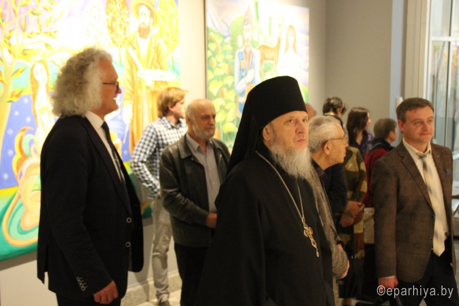 В числе приглашенных был настоятель храма св. вмц. Варвары аг. БОровики архимандрит Алексий (Желенок). С автором работ его роднит детская наивность, да и живя в одном городе они знакомы друг с другом. Они оба, своим искусством и служением пытаются передать присутствие Божие в своем сердце. Когда это происходит - тогда у человека появляется четкая система координат, он четко знает, что ему можно и нужно делать, а что не при каких обстоятельствах делать не следует.