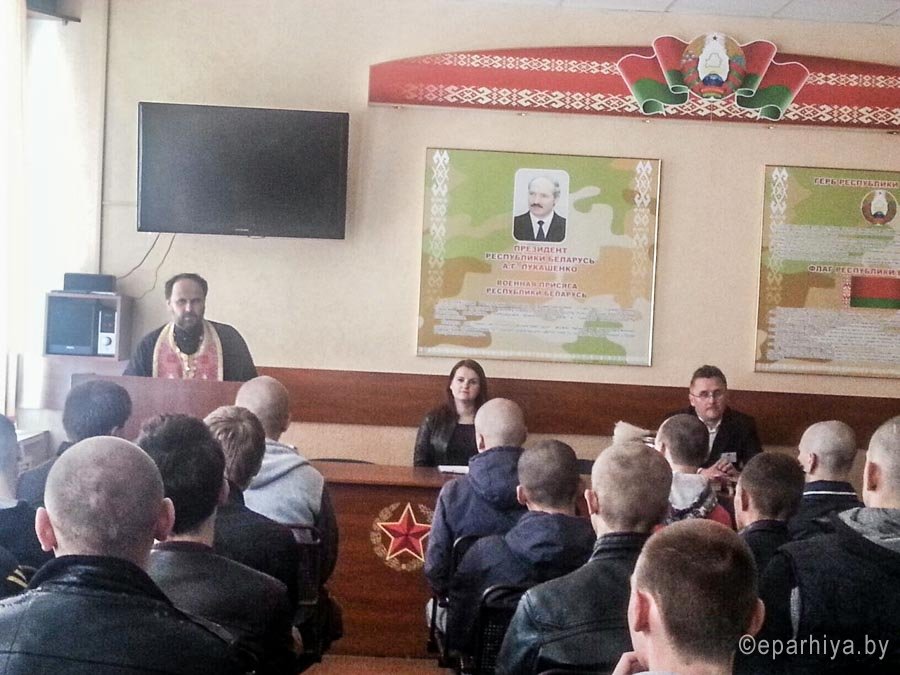 18 мая 2017 года клирик прихода храма св. прп. Серафима Саровского в г. Гомеле протоиерей Виталий Левчук принял участие во встрече с призывниками, которая состоялась в Гомельском областном военкомате.В начале встречи с приветственным словом к молодым людям обратился ведущий специалист направления идеологической работы и социальной защиты военкомата Звегинцев Вячеслав Анатольевич. Он призвал отнестись к новому этапу жизни с чувством ответственности и с гордостью нести звание военнослужащего.