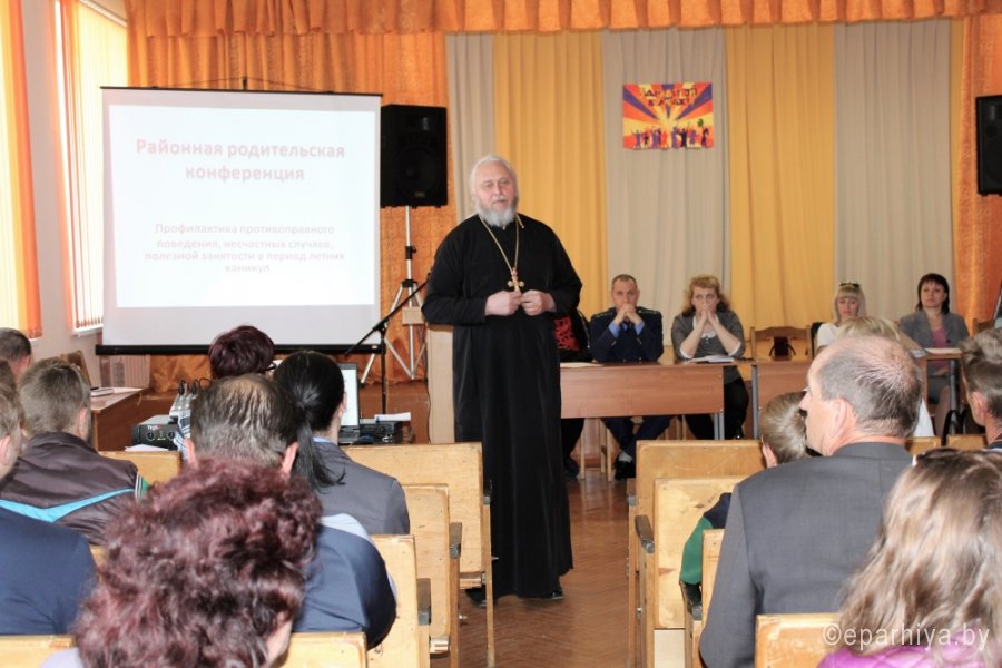 19 мая 2017г. протоиерей Алексей Смотрицкий, настоятель прихода храма святого благоверного князя Александра Невского в г. Рогачёве, принял участие в районной родительской конференции, посвящённой профилактике противоправного поведения, несчастных случаев и организации полезной занятости в период летних каникул.