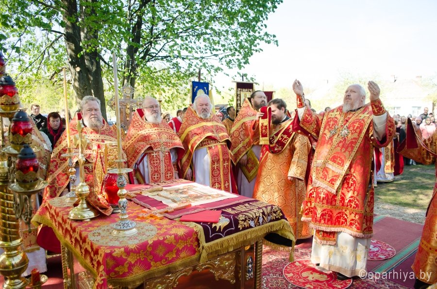 Память – это самое важное, что есть у человека. Она согревает его душу теплом хороших событий и прожигает до мозга костей воспоминаниями о смертях и потерях. Она не дает человеку повторить страшные ошибки, благодаря ей помнят многие подвиги и свершения. В русской православной церкви, отдельное место в памяти каждого верующего отводится тем, кто отдал свою жизнь за молитву Богу и распространение Веры. Тем, кто под страхом смерти не предал своих идеалов и поправу считается Святым и почитаемым для каждого христианина. Однако время идет, оно не щадит не только людей, но и людскую память, стирая из нее имена праведников, которых нельзя забывать. Сегодня, 13 мая 2017г., дабы почтить память святителя Макария Киевского и напомнить всем о его бессмертном подвиге, по благословению преосвященнейшего Стефана, епископа Гомельского и Жлобинского, состоялся Крестный ход и Божественная литургия под открытым небом на территории бывшего Макарьевского монастыря.