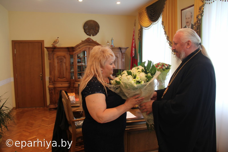 15 мая 2017г. Преосвященнейший Стефан поздравил с Днем Рождения председателя Добрушского райисполкома О.Ф. Мохореву. В своих поздравительных словах Владыка отметил: "Уважаемая Ольга Федоровна! От все души примите мои поздравления с Днем Рождения. Пусть Господь дарует Вам здоровья, счастья, благополучия и больших достижений на занимаемом посту. Мы очень признательны за тот труд, благодаря которому укрепляется взаимоотношение епархии и руководства района. Да сопутствует Вам в трудах Ваших всесильная помощь Божия! Многая и благая Вам лета!"