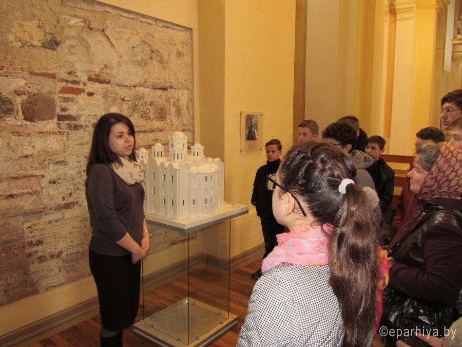 В ходе экскурсии ребята смогли приложится к святыням монастыря и узнать много интересного о жизни монахинь и о самом монастыре. Дальнейшее путешествие лежало в собор святой Софии, который был построен между 1044-1066 годами полоцким князем Всеславом Чародеем. Он стал одним из первых православных оборонных храмов на Беларуси. Ребят очень заинтересовала архитектура, о которой рассказал экскурсовод. После многочисленных пожаров и разрушений со времен основания, собор восстановили в стиле виленского барокко. Внутреннее убранство храма претерпело изменения. Кроме барочных колонн, здесь очень много таких элементов декора, как лепные украшения и фигурные карнизы. Несмотря на многочисленные реконструкции здания, изменившие его первозданный вид, собор святой Софии, по-прежнему, впечатляет своей архитектурой. На сегодняшний день он несет функцию не только музея, но и концертного зала, где проходят международные конкурсы и фестивали органной музыки. Богослужение совершается только один раз в году в день памяти преподобной Евфросинии Полоцкой 5 июня.