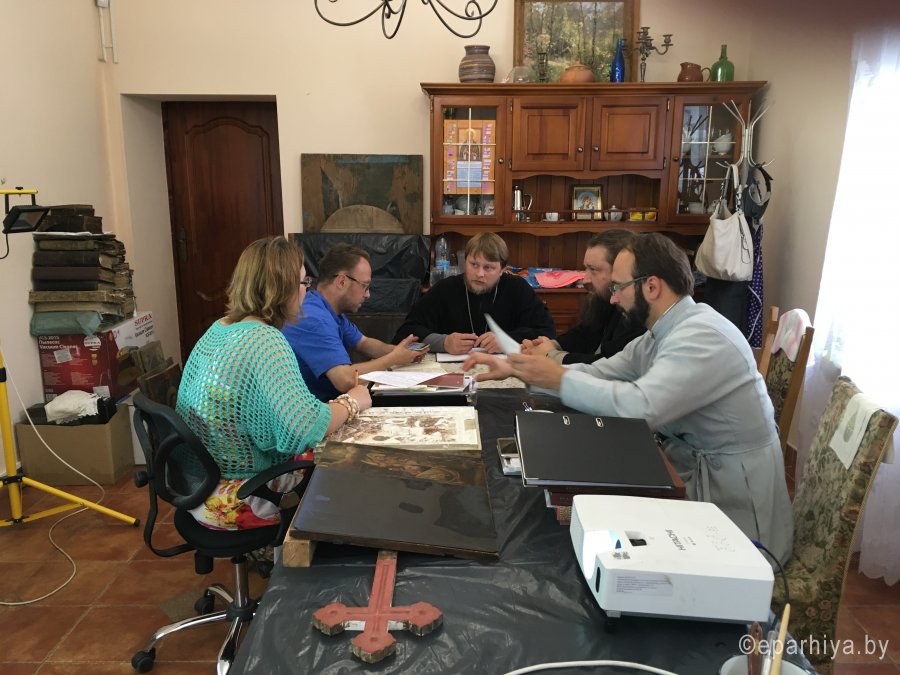 23 июля состоялось очередное рабочее заседание реставрационного совета Гомельской епархии под председательством секретаря Гомельской епархии протоиерея Георгия Алампиева.Поднимались вопросы о создании единого каталога музейных и архивных фондов Гомельской епархии. Сделан отчет о проведенной выставочной работе отдела. Особое внимание было уделено обсуждению проекта концепции будущего Церковно-археологического кабинета Гомельской епархии Белоруской Православной Церкви. Была сделана презентация о выполненной значительной реставрационной работе Елены Глушаковой - реставратора, древлехранителя Гомельской епархии по иконам Богоматерь с Младенцем (конец 16 – начало 17 вв.) и великомученица Параскева (древнебелорусская живопись, конец 17 в.).