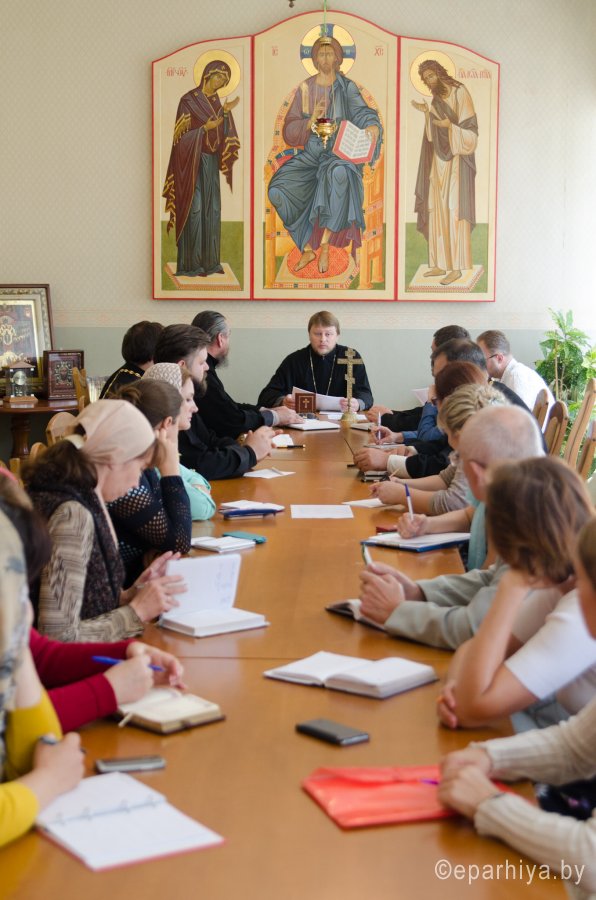 11 сентября 2017г., в здании Гомельского Епархиального управления под председательством секретаря Гомельской епархии протоиерея Георгия Алампиева прошло заседание координационного совета.В ходе заседания обсуждались планы празднования предстоящего Дня памяти святых благоверных князей Петра и Февронии Муромских, празднования 145 лет со дня первого освящения Свято-Успенского собора г. Речицы, а также обсуждение подготовки отчетной документации.