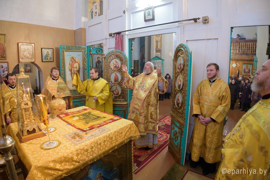 Божественную литургию в Неделю 29-ю по Пятидесятнице, святых праотец, Преосвященный Стефан совершил в храме Покрова Пресвятой Богородицы г.п.Довск 24 декабря 2017г.Преосвященному сослужили: секретарь Гомельской епархии протоиерей Георгий Алампиев, благочинный Рогачевского округа протоиерей Алексей Смотрицкий и духовенство храма.