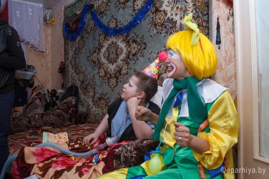 Дружная, веселая команда из шести человек, которые являются постоянными и активными участниками молодежной группы "ИХФИС" при кафедральном соборе Петра и Павла г. Гомеля 24 декабря 2017г., выехала в д. Красная Буда (Добрушский район, Гомельская область) с целью, поздравить Пузикова Даниила с Днем Рождения и наступающим Новым годом.Для Даниила и его друзей было представлено маленькое праздничное представление с конкурсами, загадками, танцами, песнями и подарками. Даниил впервые в жизни смог подержать в руках голубя, ощутить его тепло, послушать сердцебиение и конечно же выпустить его обратно на волю. Завершением праздничного представления стал фейерверк и шумные хлопушки.