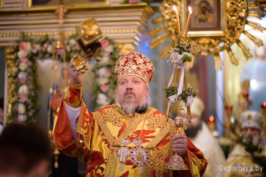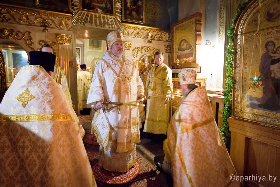 Праздничную Божественную литургию в Светлый праздник Рождества Господа и Спаса нашего Иисуса Христа, 7 января 2018г., Преосвященнейший Стефан совершил в Свято-Петро-Павловском кафедральном соборе г.Гомеля.