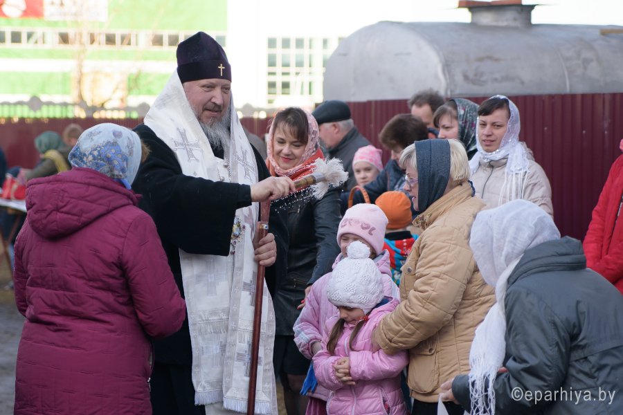 В преддверии великого праздника Воскресения Христова 7 апреля 2018 г. клирик храма святого Архангела Михаила в г.Гомеле иерей Максим Новик освятил пасхальные куличи в в/ч 5525 г.Гомеля и поздравил всех с наступающим праздником.
