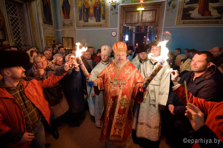 За Божественной литургией при большом стечении верующих был торжественно встречен Благодатный Огонь из храма Гроба Господня в Иерусалиме. Огонь доставила делегация Гомельской епархии, которая в преддверии Пасхи Господней, возносила свои молитвы на Святой Земле, преклоняясь пред Великими христианскими Святынями.