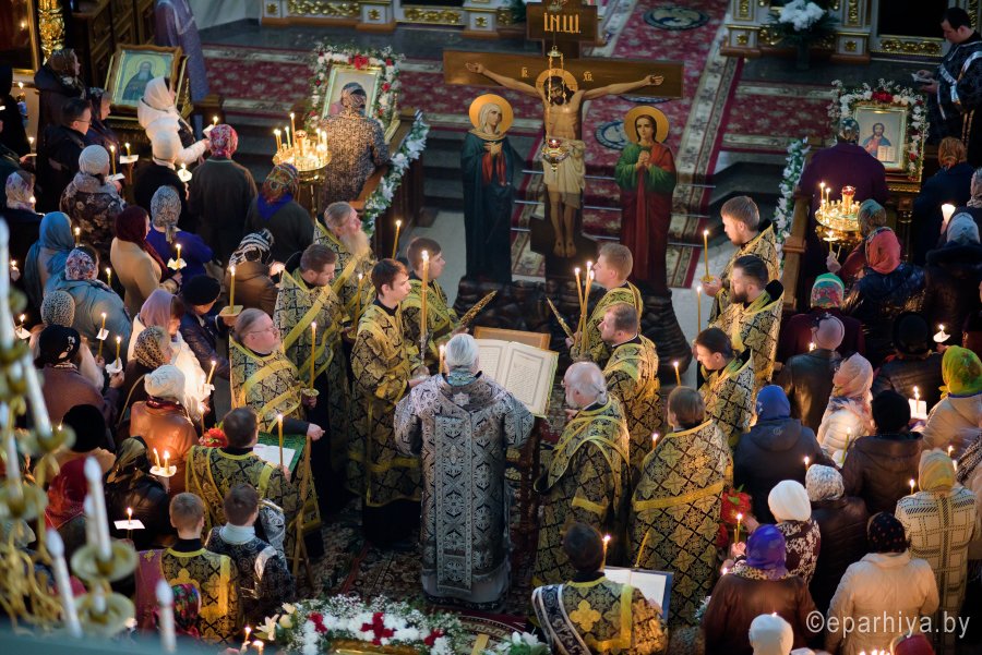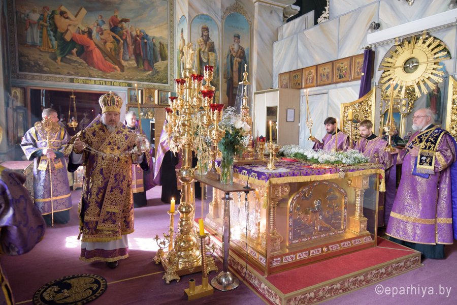 6 апреля 2018 года, в пятницу Страстной седмицы, день воспоминания Святых спасительных Страстей Господа нашего Иисуса Христа, Высокопреосвященнейший Стефан епископ Гомельский и Жлобинский совершил уставные богослужения с выносом Плащаницы Спасителя в Соборе святых апостолов Петра и Павла в г.Гомеле.Высокопреосвященнейшему сослужили секретарь Гомельской епархии протоиерей Георгий Алампиев и духовенство собора.