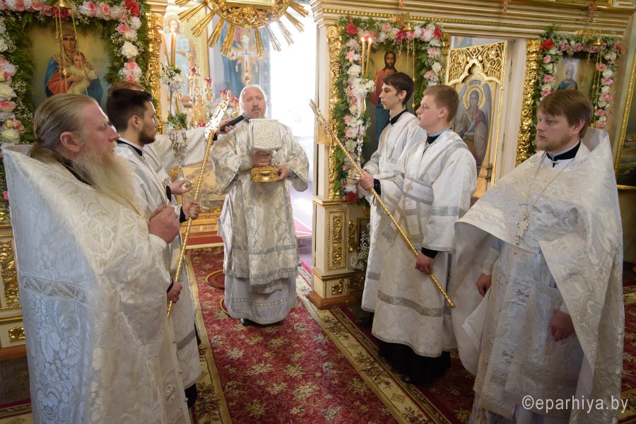 Высокопреосвященнейший Стефан, архиепископ Гомельский и Жлобинский совершил уставные богослужения Великой Субботы и праздника Благовещения Пресвятой Богородицы в соборе святых первоверховных апостолов Петра и Павла 7 апреля 2018г.Высокопреосвященному сослужили: секретарь Гомельской епархии протоиерей Георгий Алампиев и духовенство собора.