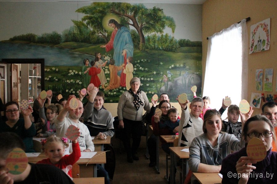 На Вербное воскресенье приход храма святителя Василия Великого в г. Жлобине принимал гостей. Молодые люди и дети из отделения дневного пребывания инвалидов при ТЦОН Жлобинского района пришли в Воскресную школу, где неравнодушные прихожане храма организовали для них мастер-класс по расписыванию деревянных яиц.Совсем скоро Пасха и ребята вместе с учителем Воскресной школы вспомнили события последних дней земной жизни Господа Иисуса Христа, Крестные страдания, смерть и Воскресение Господне. Следует отметить, что с общение с молодыми людьми из отделения носит систематический характер. С прихожанами храма их связывает Евхаристическое общение, поэтому с ребятами легко разговаривать на православную тематику, они охотно отвечают на вопросы и задают их сами.